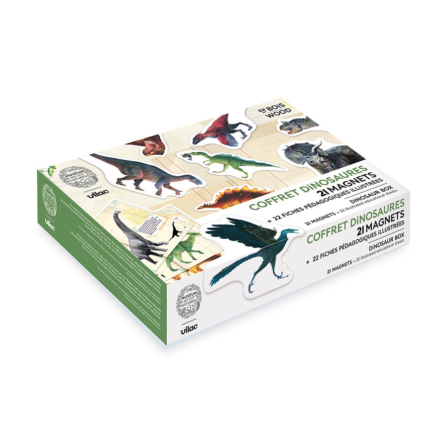 Ces 21 magnets en bois sont accompagnés de fiches explicatives dans lesquelles vous découvrirez des détails et anecdotes uniques sur l'origine de ces êtres fascinants du crétacé : l'origine de leur nom, pourquoi certains avaient des plumes et d'autres des cornes, quelle était la couleur de leur peau, à quoi servait leur queue ou leur long cou et bien d'autres découvertes.