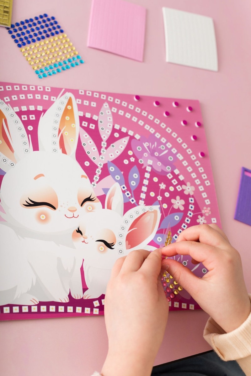 Faciles à réaliser, ces mosaïques colorées permettent aux petites artistes de créer de mignons animaux tout en s’amusant. Un jeu éducatif et créatif parfait pour offrir aux enfants dès 5 ans.