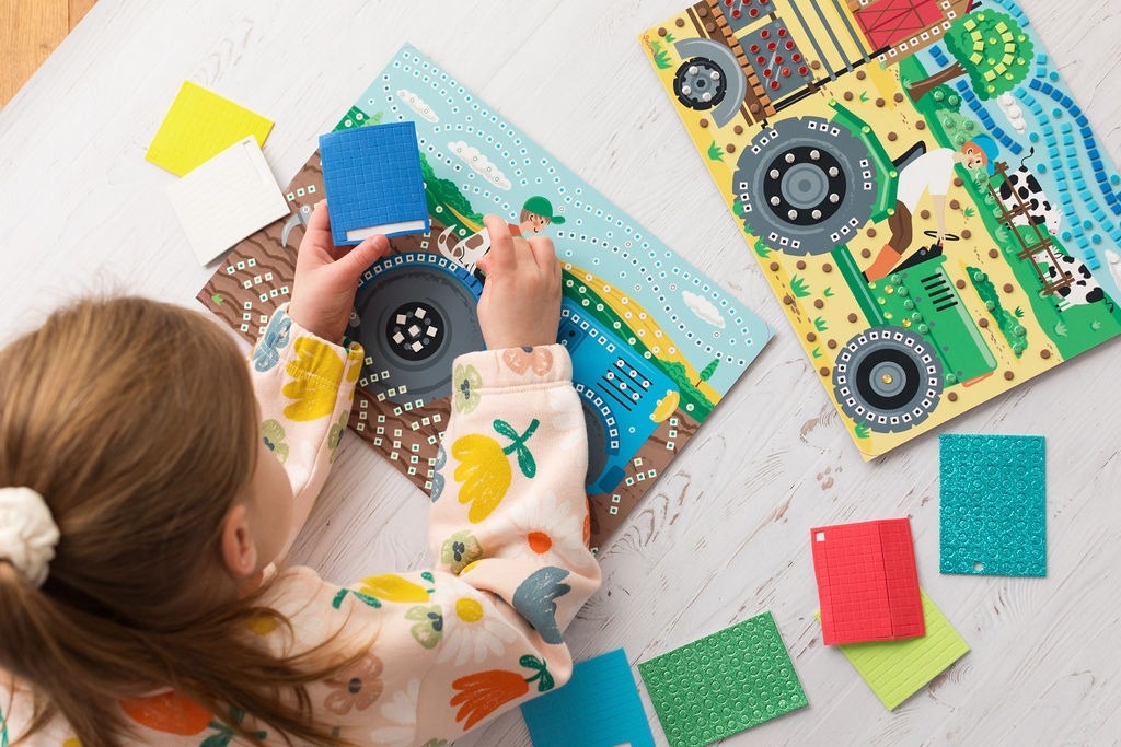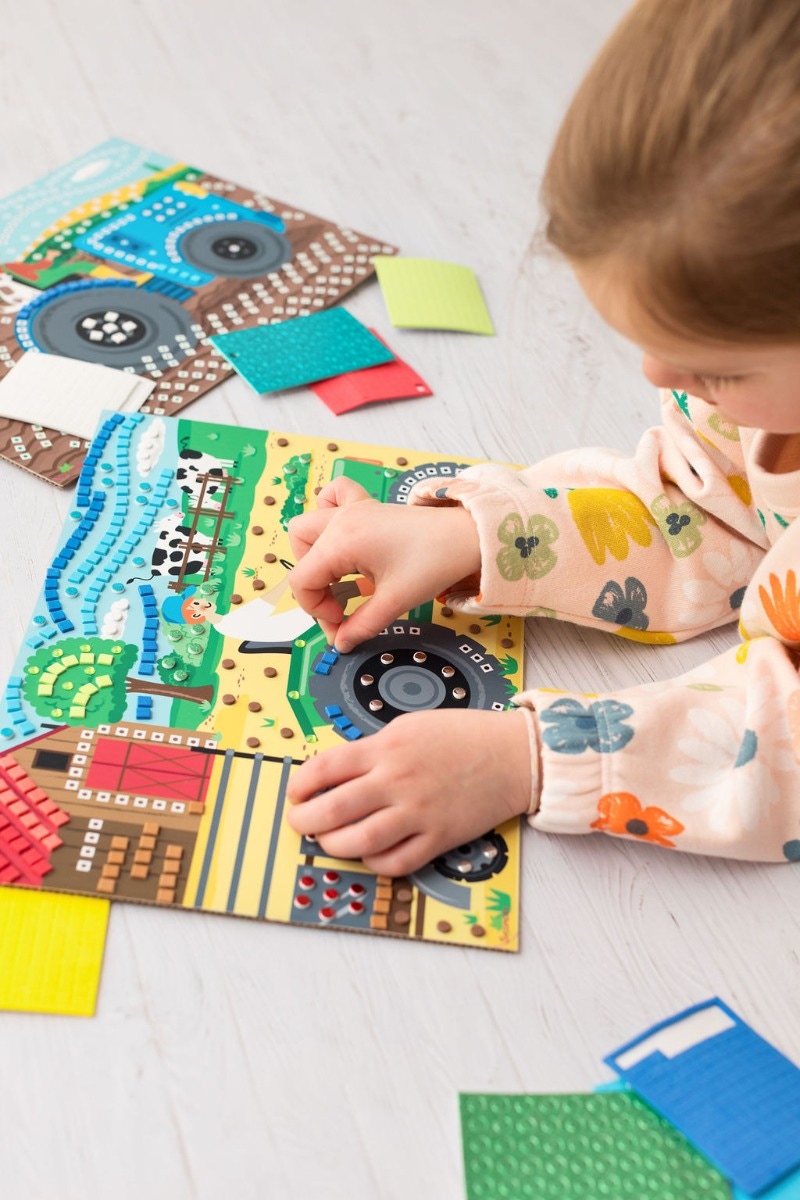 Faciles à réaliser, ces mosaïques colorées permettent aux petites artistes de créer de jolis tracteurs tout en s’amusant. Un jeu éducatif et créatif parfait pour offrir aux enfants dès 5 ans.