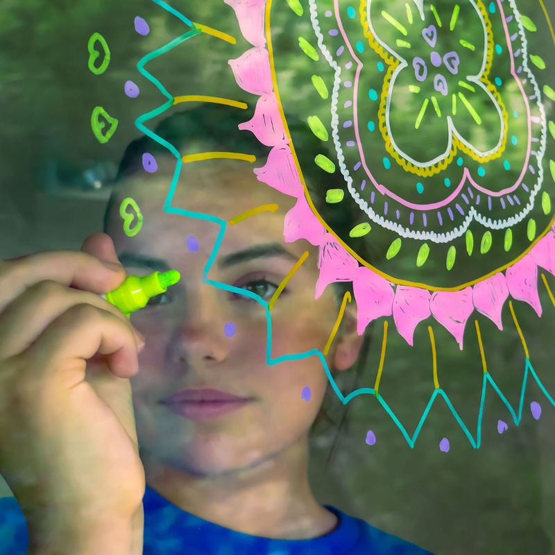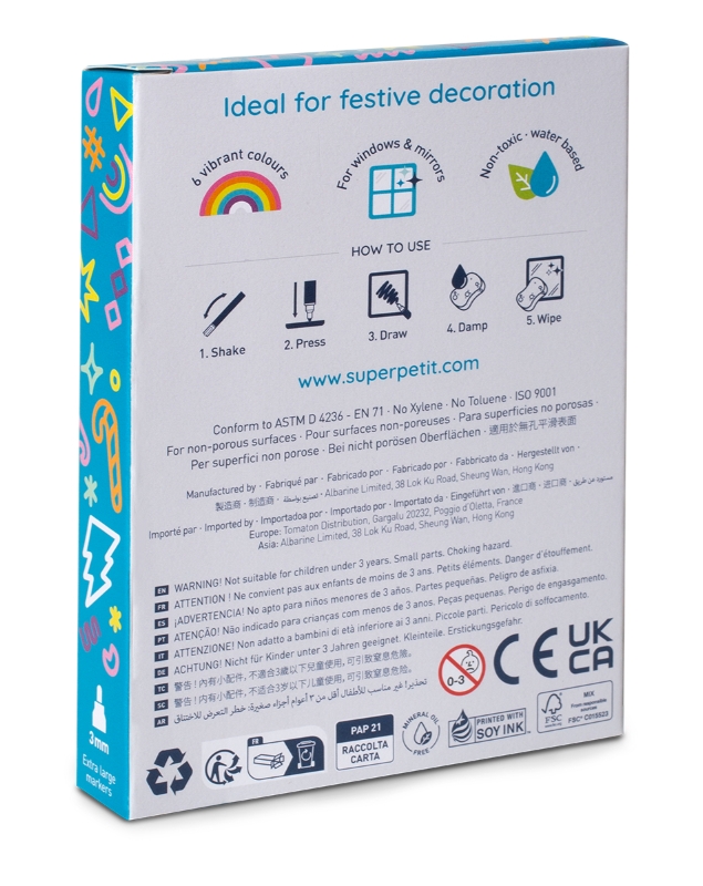 Et si on dessinait sur les vitres ? Pour chaque occasion imaginez de nouvelles créations éphémères qui égayeront votre intérieur. Six feutres à l'eau, sans odeur, lavables, pour vitres et mirroirs.