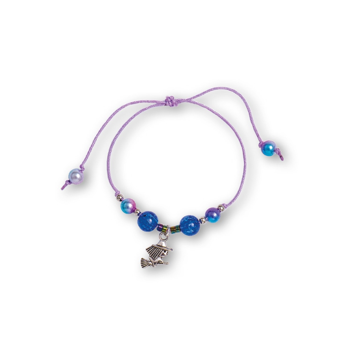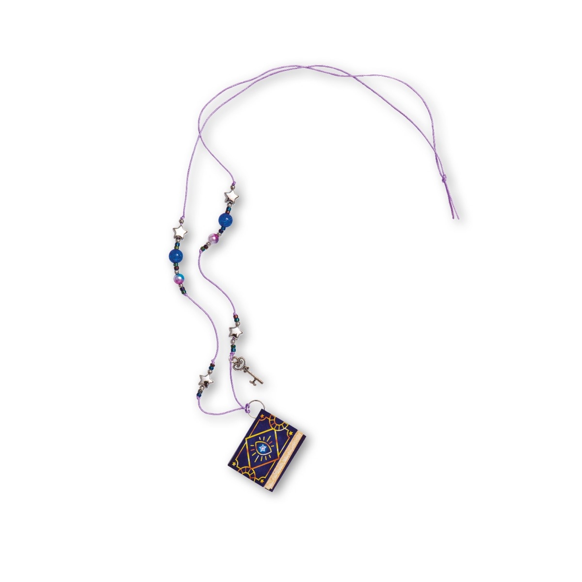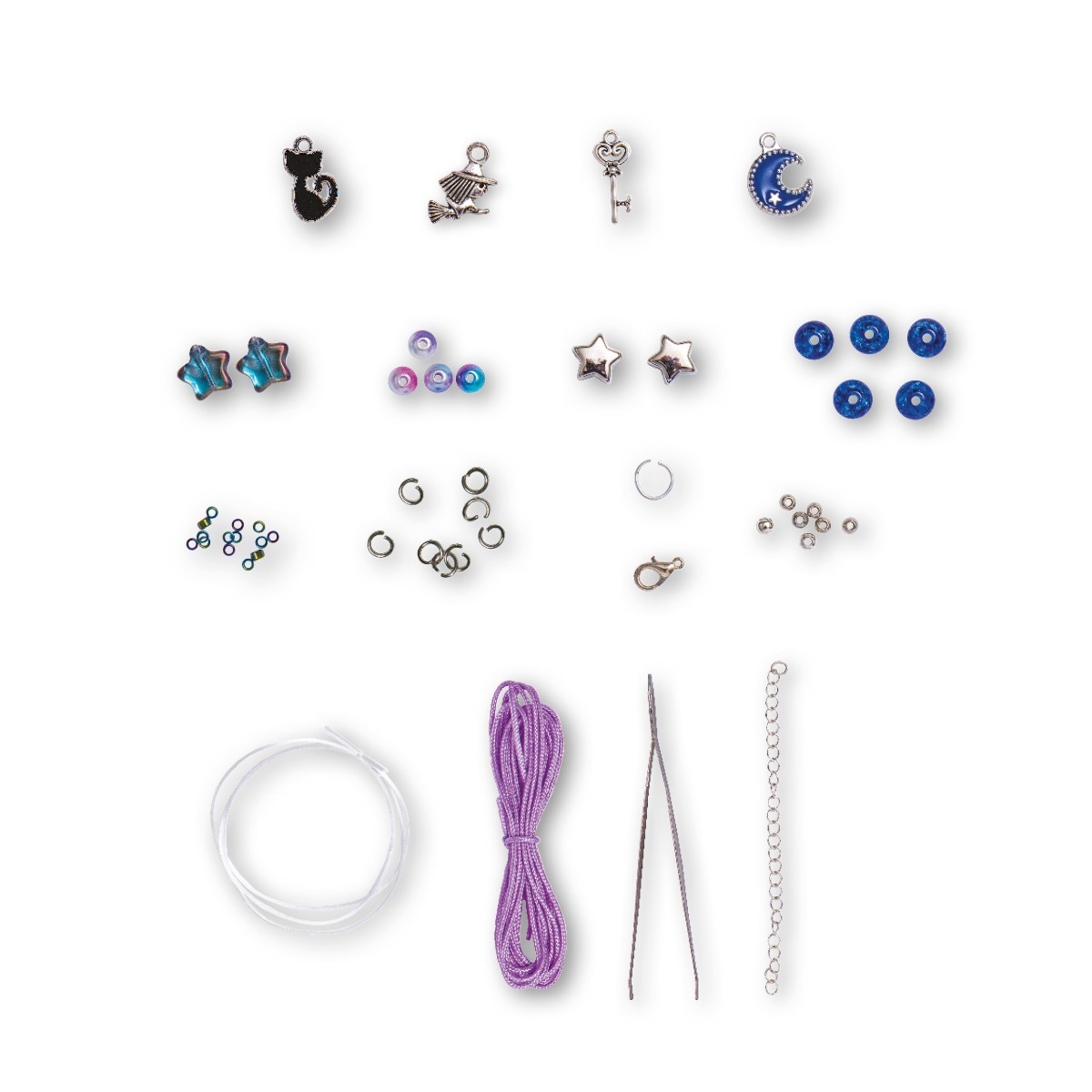 Créé tes bijoux d'apprenti(e) sorcier(ère) ! Ce coffret est composé de 120 perles irisées, 100 perles argentées, 16 perles craquelées, 8 perles nacrées, 10 perles étoiles argentées, 4 breloques (chat, lune, clé et sorcière), 4 perles étoiles irisées, 10 anneaux de raccord, 1 grand anneau de raccord, 1 fermoir, 1 fil élastique, 1 fil de jade, 1 chaîne argentée, 1 pince à épiler, 1 livret avec les instructions et les modèles et 1 grimoire à découper et à assembler. Ce contenu très riche permet de réaliser 8 bijoux dont 3 bracelets, 1 collier et 4 bagues. La boîte peut être réutilisée et devient une jolie boîte à bijoux. Cette activité permet de développer sa créativité et sa motricité fine et est idéale pour les enfants à partir de 8 ans.