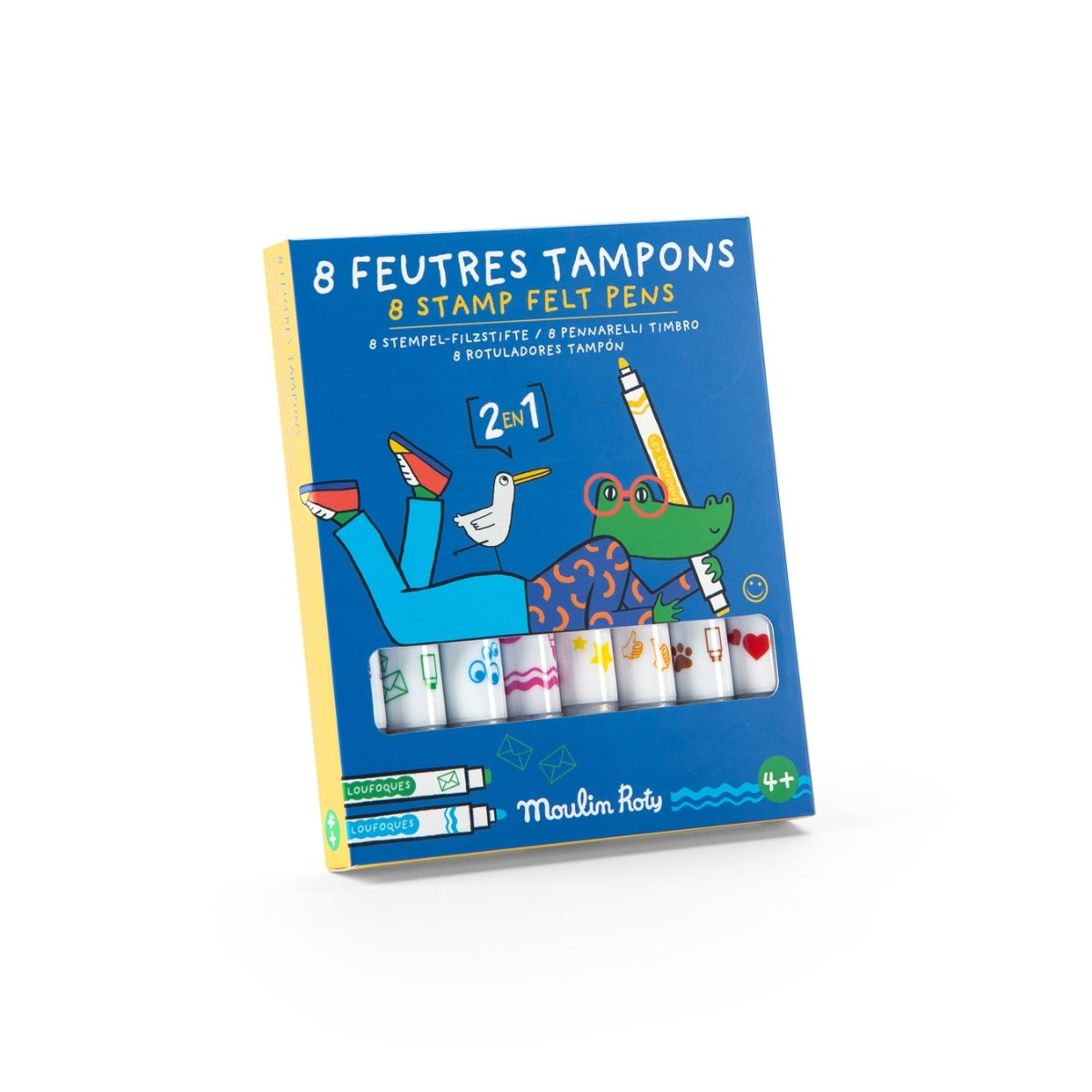 8 feutres tampons 2 en 1 Les Loufoques Moulin Roty