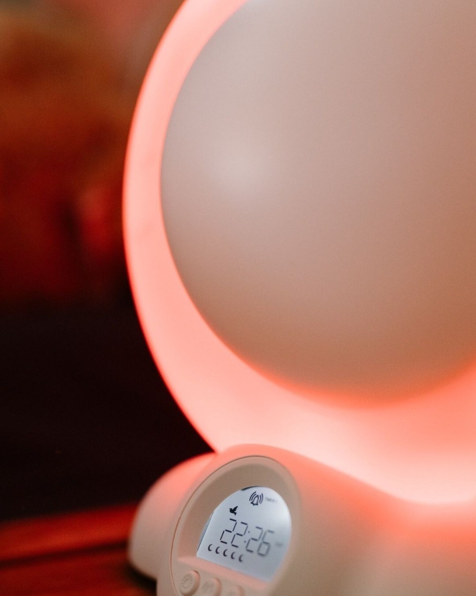 KIDYMOON est un indicateur de sommeil unique : elle indique doucement à votre enfant si il peut sortir du lit ou si il reste du temps avant son lever grâce à la présence de la lune (nuit) ou du soleil (lever). Votre enfant n’a pas besoin de savoir lire l’heure. Le passage de la lumière de la lune au soleil se fait de manière progressive et peut s’accompagner de sons issus de la nature. Fonctionne également comme lampe de chevet avec une temporisation de 15 minutes.