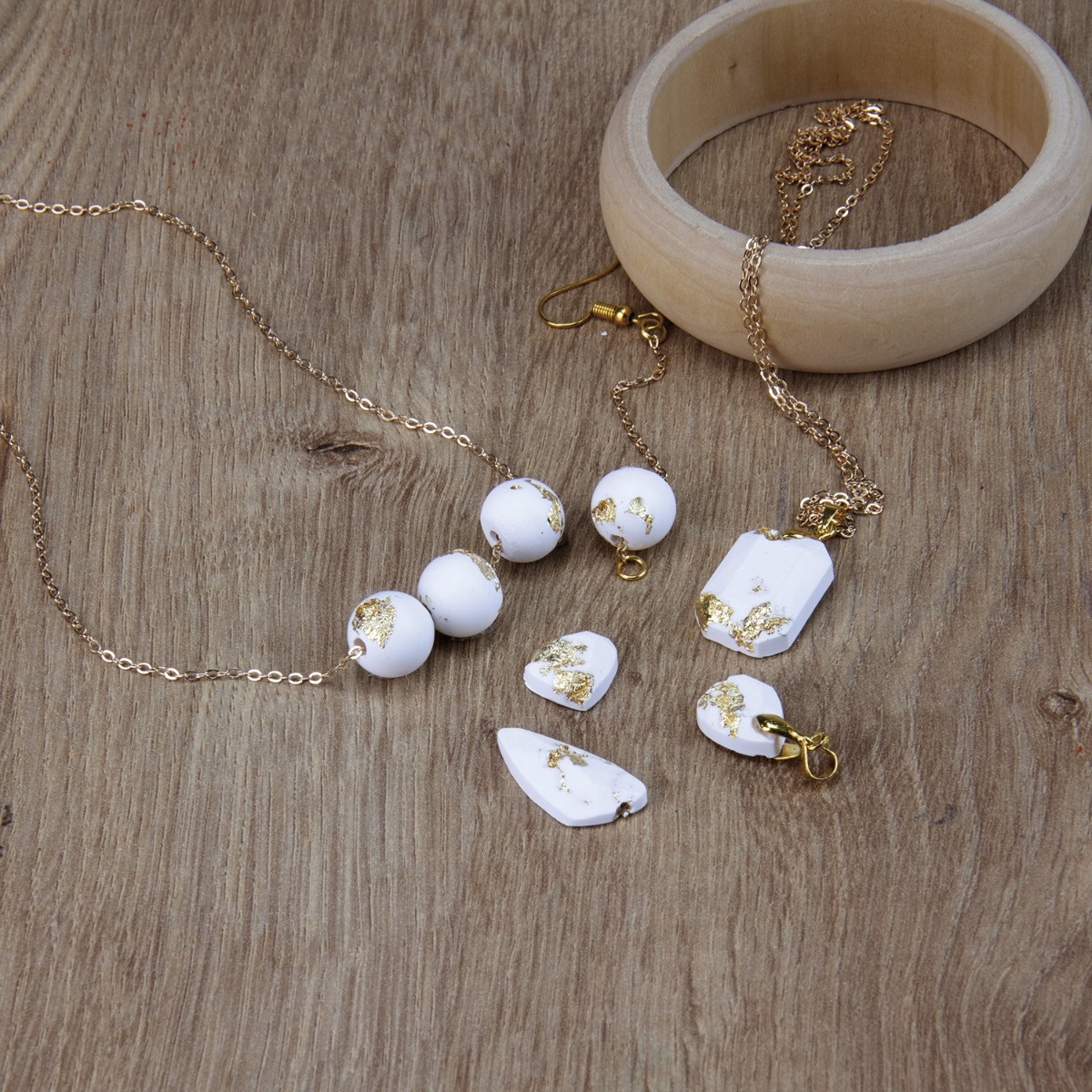 Atelier de bijoux ciment et feuilles d'or Sycomore