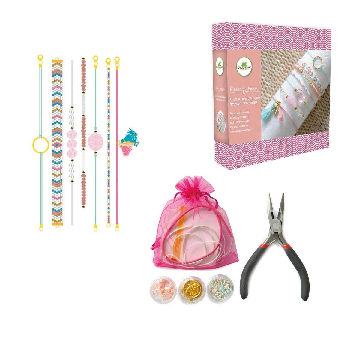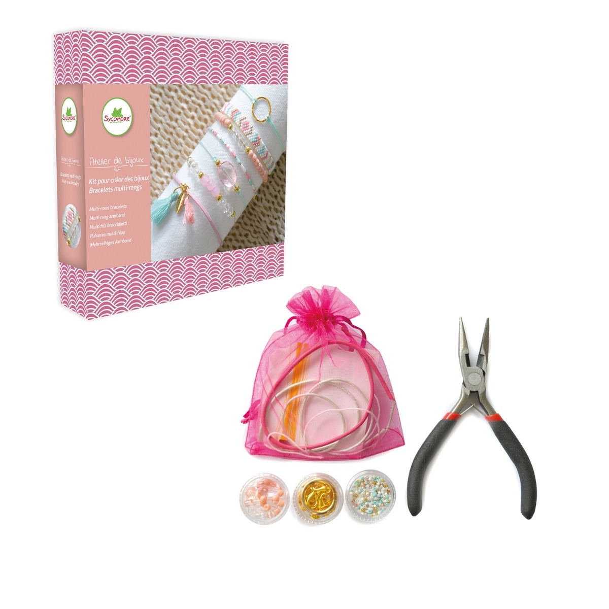 La bijoux box Atelier de bijoux multirangs ArtDéco Sycomore permet de créer des colliers et bracelets élégants aux multiples rangs, inspirés du style Art Déco.
