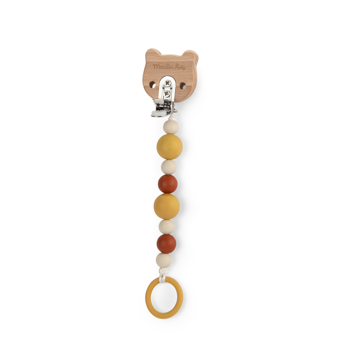 Son clip ajustable permet de l’accrocher facilement à tous les supports : vêtements, poussette ou siège auto. Les perles en silicone sont sûres pour l’enfant, douces à mâchouiller et agréables au toucher, stimulant sa motricité tout en l’amusant. Un accessoire à la fois utile et adorable, idéal pour accompagner bébé au quotidien.