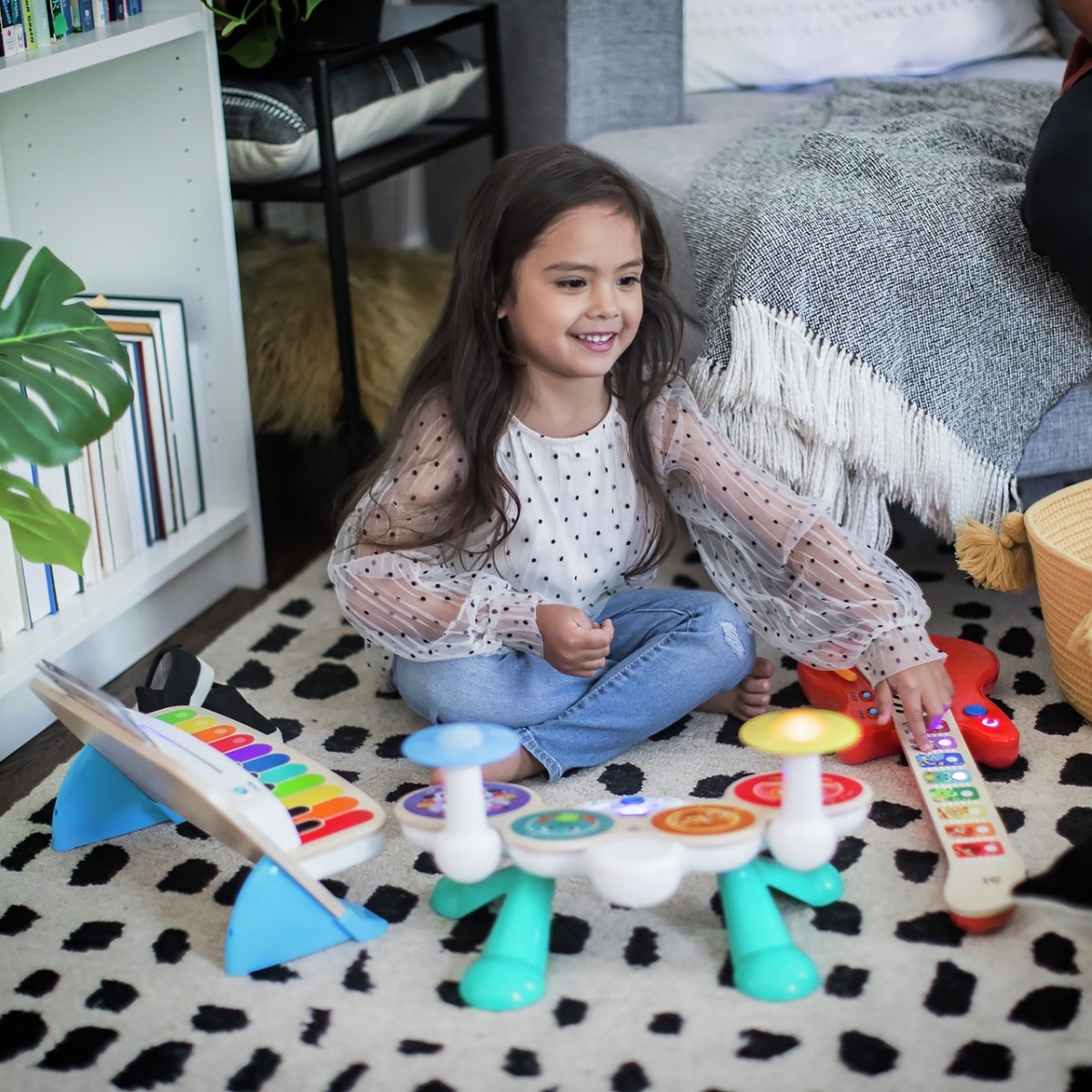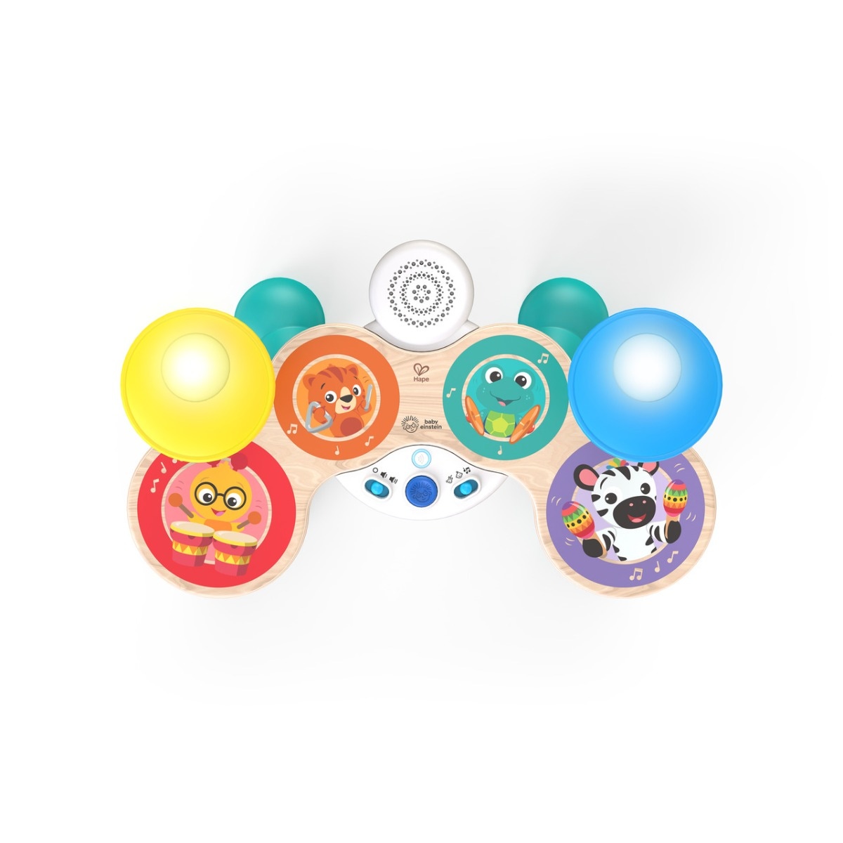 Apprenez à jouer un instrument seul ou à jouer de la musique "Jam" ensemble comme un vrai groupe avec la batterie Magic Touch de la gamme Baby Heinstein de chez Hape !