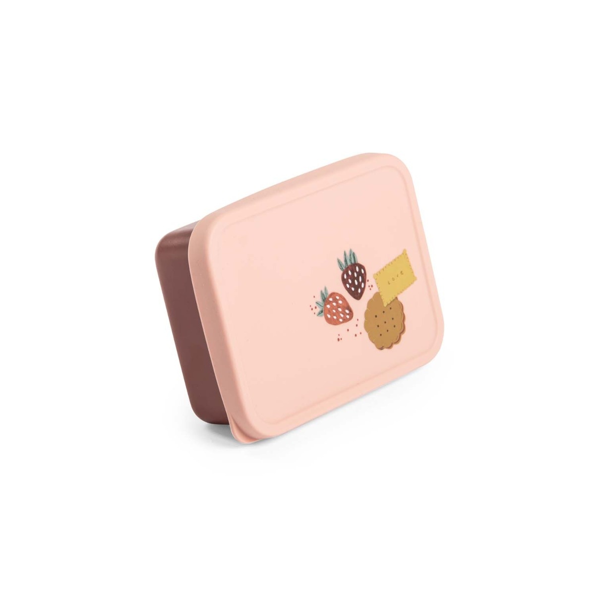 Jolie boîte à goûter de la collection Après la pluie de Moulin Roty. Conçue en inox et couvercle en silicone. Parfaitement hermétique elle se glissera facilement dans les sacs des tout-petits.