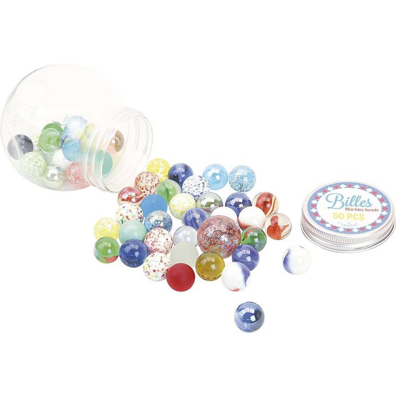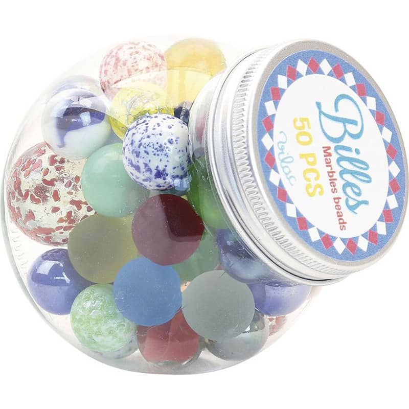 C'est enfin la récré, comment résister à une bonne partie de billes avec ces bonbonnières ? Contenant 50 billes dont 1 calot