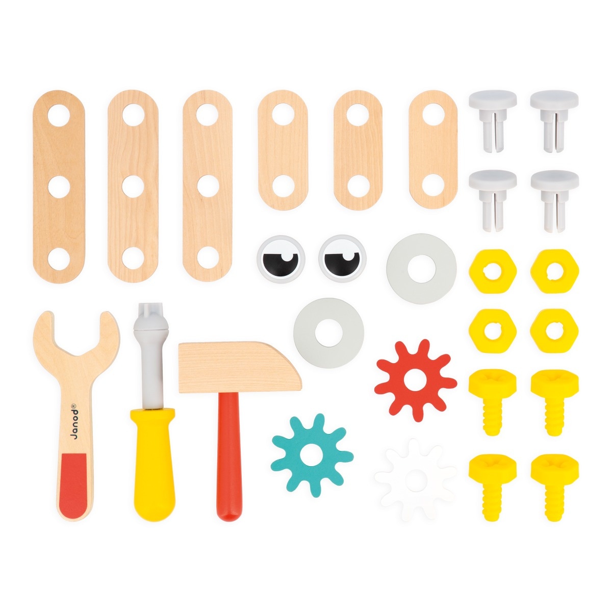 Mister bricolage arrive, sa caisse à outils en main pour réparer tous les chantiers ! Cette jolie caisse à outils se compose de 3 outils, de 13 accessoires en bois : des planches et des engrenages pour créer ses propres constructions. De 14 accessoires en plastique : pour visser, dévisser et clouer. Petit plus, les vis sont équipées de cran pour ajouter un peu plus de jouabilité et de difficulté lors de l’assemblage. Pratique, la poignée peut être assemblée ou non, et permet de transporter facilement sa boite à outils partout ! Jouet en bois FSCTM. Jouet d’imitation pour les enfants à partir de 3 ans.