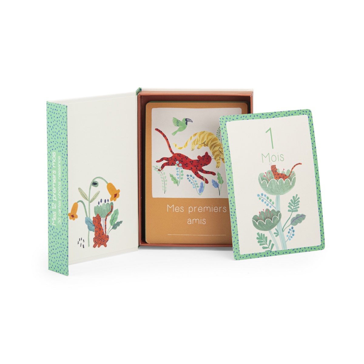 Immortalisez les moments précieux de la première année de votre bébé avec le coffret de 30 cartes Mes 12 premiers mois La forêt Mawa de Moulin Roty.