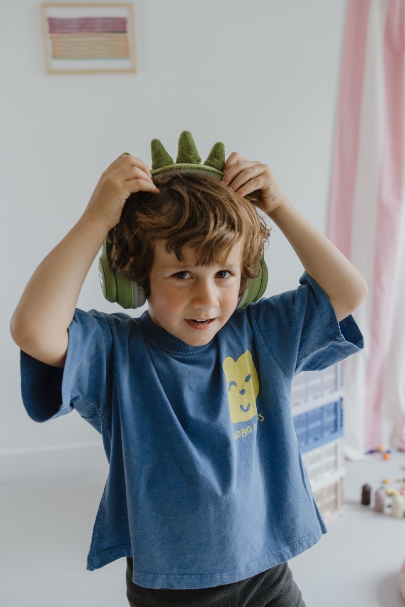 Casque Audio enfant Dino de chez Kidywolf. Un casque Bluetooth et filaire avec des oreilles magnétiques pour les enfants dès 4 ans.