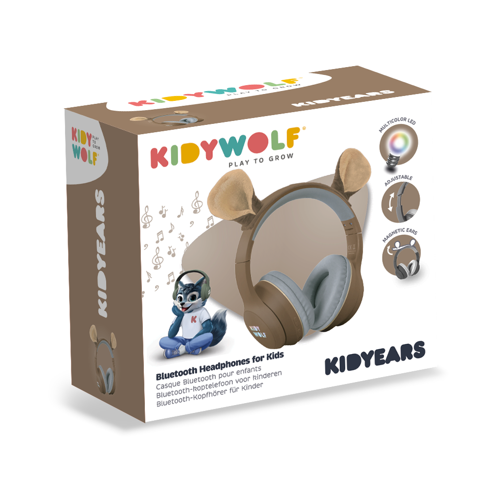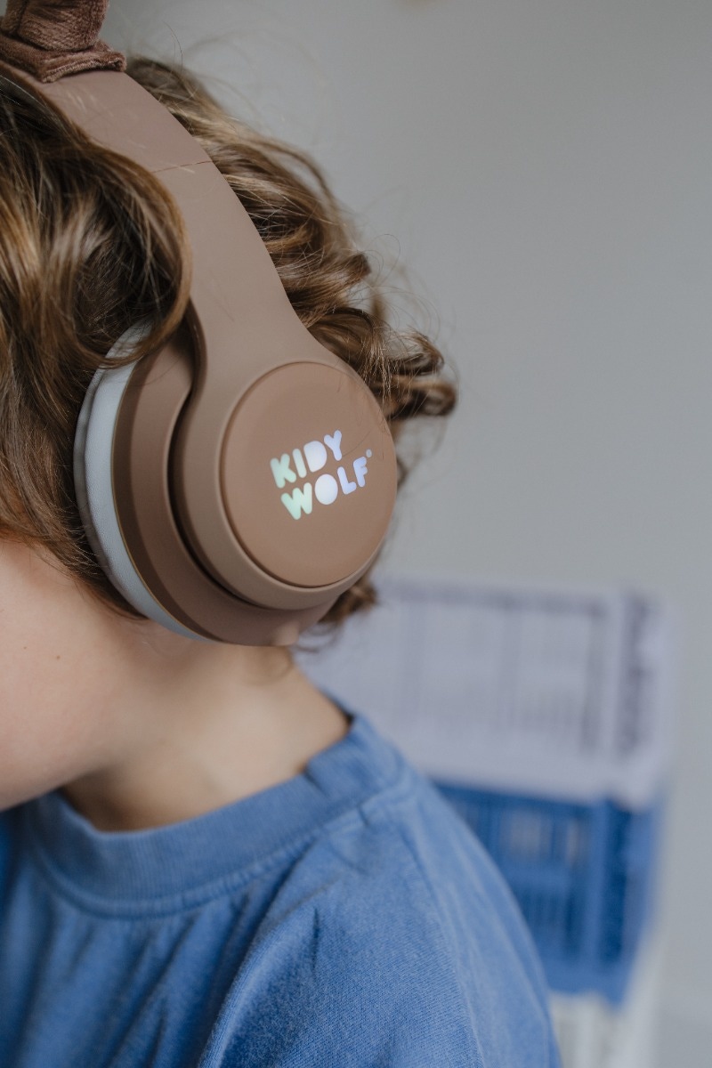 Casque Audio enfant Ours de chez Kidywolf. Un casque Bluetooth et filaire avec des oreilles magnétiques pour les enfants dès 4 ans.