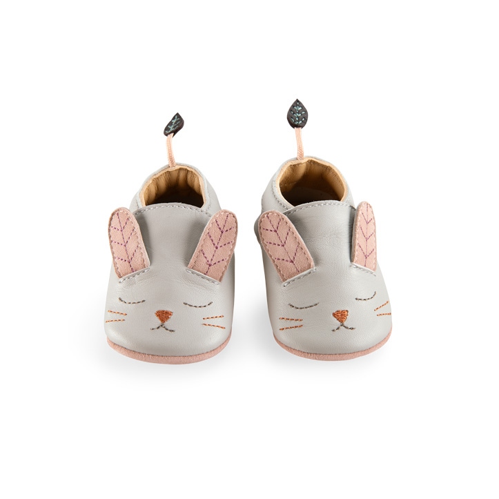 Chaussons cuir Lapin gris Après la pluie Moulin Roty