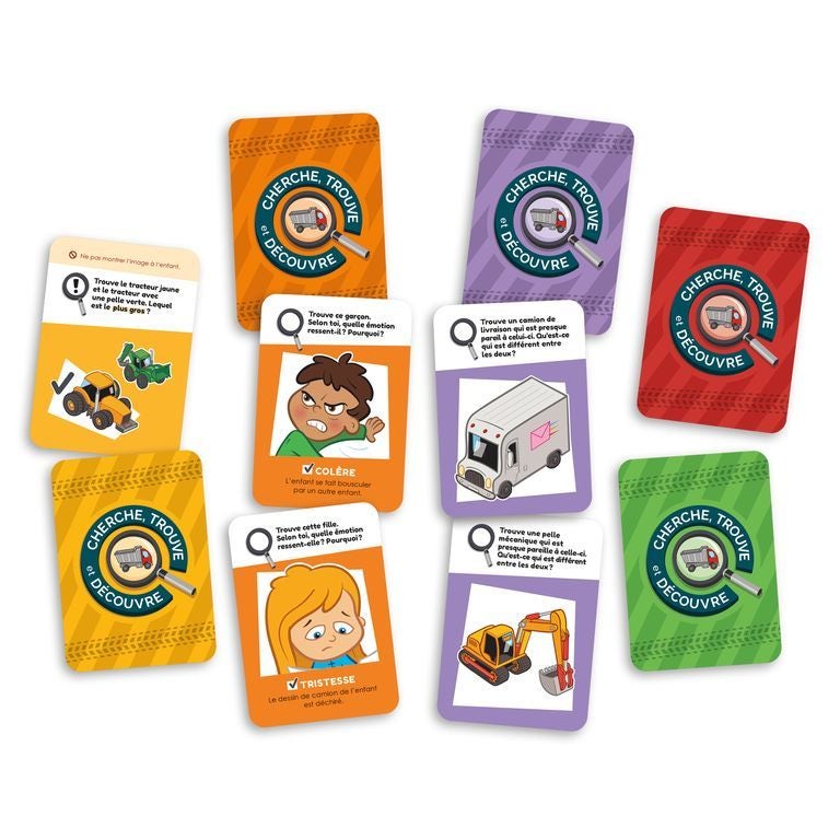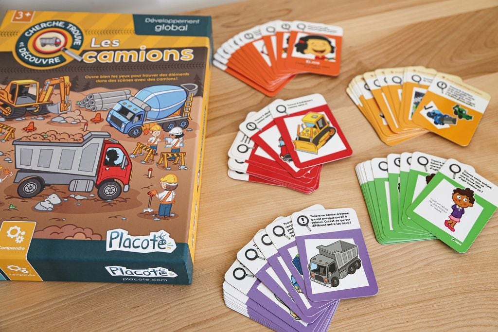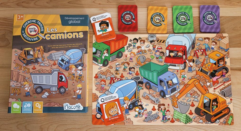 "Cherche, trouve et découvre les camions" de Blackrock Games est un jeu d'observation aux objectifs multiples. Tout d'abord, le joueur sera amené à reconnaître de petits ensembles d'objets, ce qui favorise le développement de ses compétences d'observation et de discrimination visuelle. En cherchant les éléments spécifiques liés aux camions, l'enfant renforce sa capacité à identifier des détails et des motifs dans les images. Ensuite, le jeu encourage les enfants à nommer des émotions et à comprendre leurs causes. En explorant les différentes scènes, le joueur pourra rencontrer des personnages qui expriment des émotions variées, ce qui lui permettra de développer son intelligence émotionnelle en comprenant les sentiments des autres. De plus, les consignes portant sur les couleurs et la taille des objets présents dans le jeu renforcent les compétences en vocabulaire et en compréhension des couleurs et des dimensions. Le joueur sera ainsi amené à suivre des indications précises pour réussir les différentes tâches du jeu. Dès 3 ans