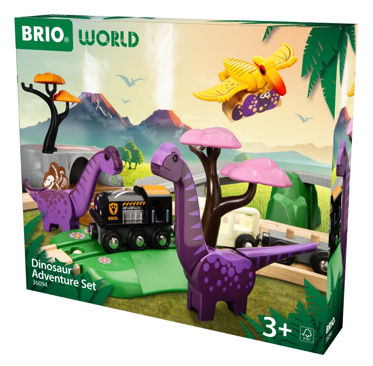 Explorez l’incroyable monde préhistorique des dinosaures dans le Circuit Aventure Dinosaure 36094. Ce circuit de train de 21 pièces comprend une locomotive et deux wagons, de nombreux éléments sur la thématique dinosaure comme la dangereuse grotte de lave et les rails décoratifs, ou encore des rails ascendants à double niveau. Découvrez aussi trois dinosaures amusants et articulés dotés de designs colorés et d’aimants BRIO pour interagir avec le monde qui les entoure. À propos de BRIO World : BRIO World est notre système de jeu ouvert qui grandit avec votre enfant. Tous les jouets BRIO World sont compatibles entre eux et permettent ainsi de créer un monde entièrement personnalisable, idéal pour stimuler les esprits en pleine croissance. Les combinaisons de jeux sont infinies et n’attendent plus que vous pour les explorer°: il vous suffit de choisir une pièce et de commencer à construire votre univers.36094 Circuit Aventure Dinosaure comprend 21 pièces : 2 figurines de brachiosaure, 1 figurine de ptéranodon, 1 grotte de lave, 1 locomotive sur le thème des dinosaures, 1 wagon, 1 wagon de chargement, 1 chargement d’œufs en bois, 3 rails thématisés, 2 rails ascendants à double niveau, 3 supports de rails, 5 rails courbés et aiguillage en bois.