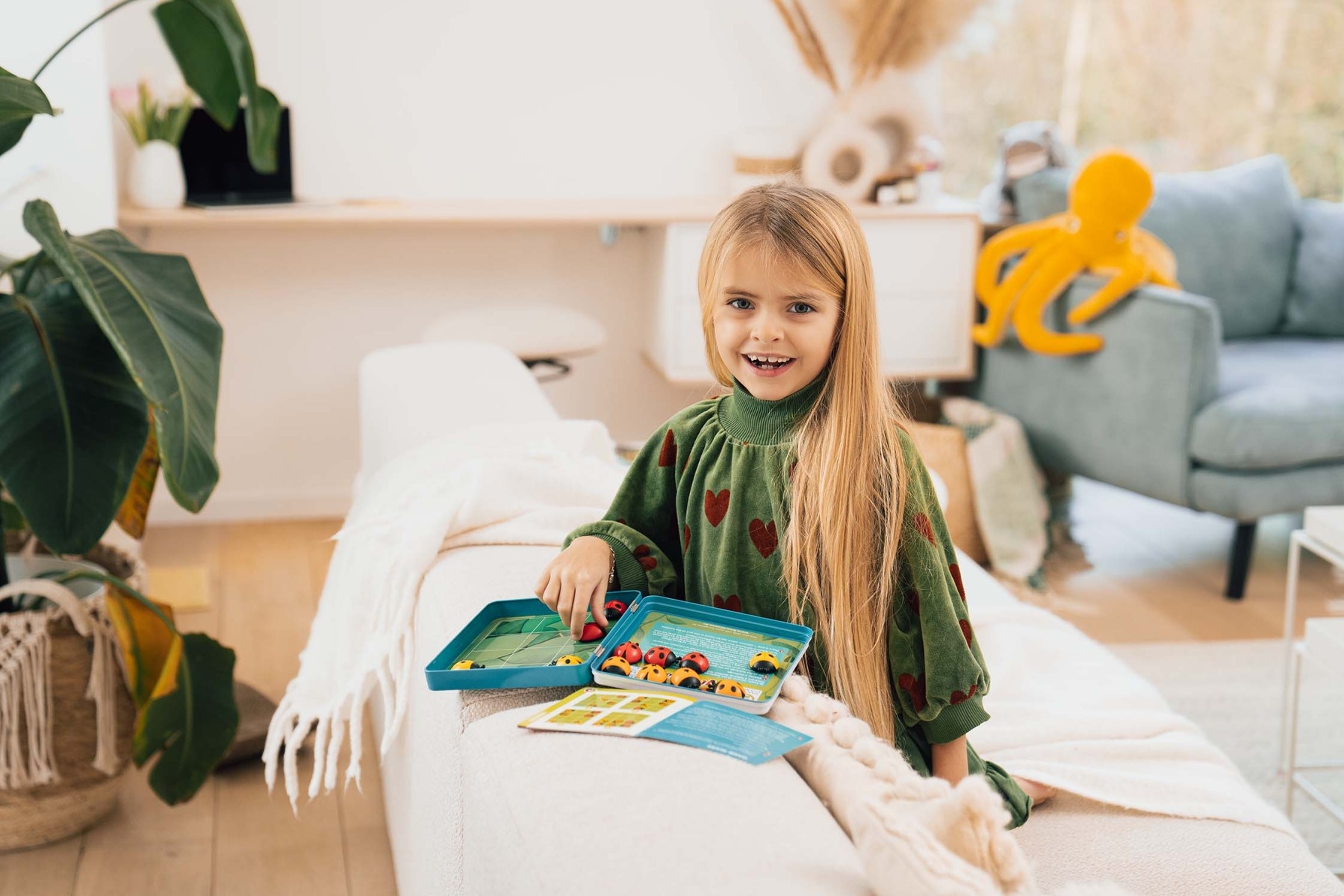 Chaque coccinelle doit trouver sa place sur les feuilles… « Coccinelles Demoiselles » est un jeu magnétique de déduction dans lequel vous devrez trouver où poser vos coccinelles sur les feuilles de l’arbre. L’ordre prescrit tient compte de la couleur des trois familles et des valeurs numériques de chaque coccinelle représentées par le nombre de points sur leur dos.