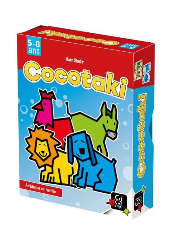 Le jeu qui passe du coq à l’âne ! Dans Cocotaki, il y a des animaux de toutes les couleurs. À son tour il faut poser une carte, soit du même animal, soit de la même couleur que la carte précédente. Mais surtout, il ne faut pas oublier d’imiter le cri de l’animal représenté sur sa carte…sauf s’il est rouge ! Celui qui se défausse de toutes ses cartes en premier a gagné. Cette variante très animée du huit américain est un jeu délirant pour toute la famille.