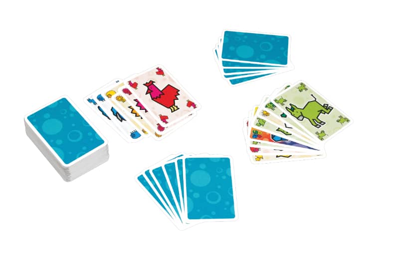 Pour la toute première partie, surtout avec de très jeunes enfants, il est recommandé de commencer avec les règles de base qui suivent ; il est ainsi plus facile de découvrir le jeu. Lorsque les joueurs maîtriseront les règles de base, ils pourront alors ajouter d’autres règles petit à petit, pour donner au jeu toute sa saveur.Le joueur assis à gauche du plus âgé commence. La partie se déroule ensuite dans le sens des aiguilles d’une montre. Quand vient son tour, le joueur doit poser une seule carte, jamais plusieurs. La carte qu’il peut jouer dépend de la carte visible sur le dessus de la pile de défausse. Le joueur doit poser soit une carte de la même couleur, soit avec le même animal. La carte est alors placée, face visible, sur la pile de défausse. Attention ! En posant sa carte, le joueur doit imiter le cri de l’animal correspondant.