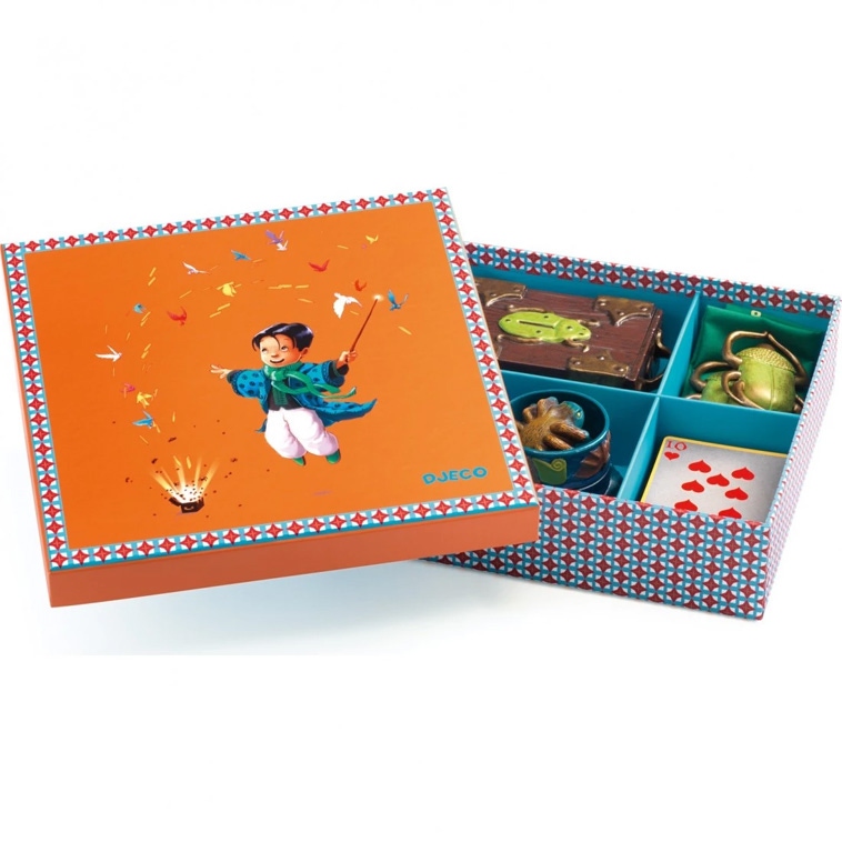 Abracadabra, Malicious Magus est un coffret Djeco comprenant 20 tours faciles pour initier les enfants de 6 à 10 ans à la magie.