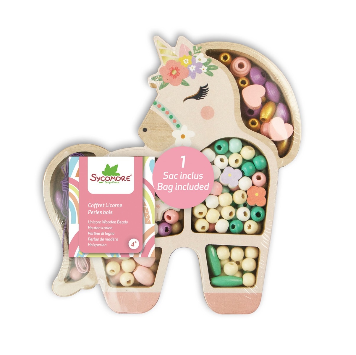 Découvrez le Coffret perles en bois Licorne Sycomore, une activité créative et ludique pour les enfants. Avec ses 170 perles colorées et ses motifs licorne tendance, ce coffret permet de réaliser facilement de jolis bijoux personnalisés tout en développant la motricité fine et l’imagination.