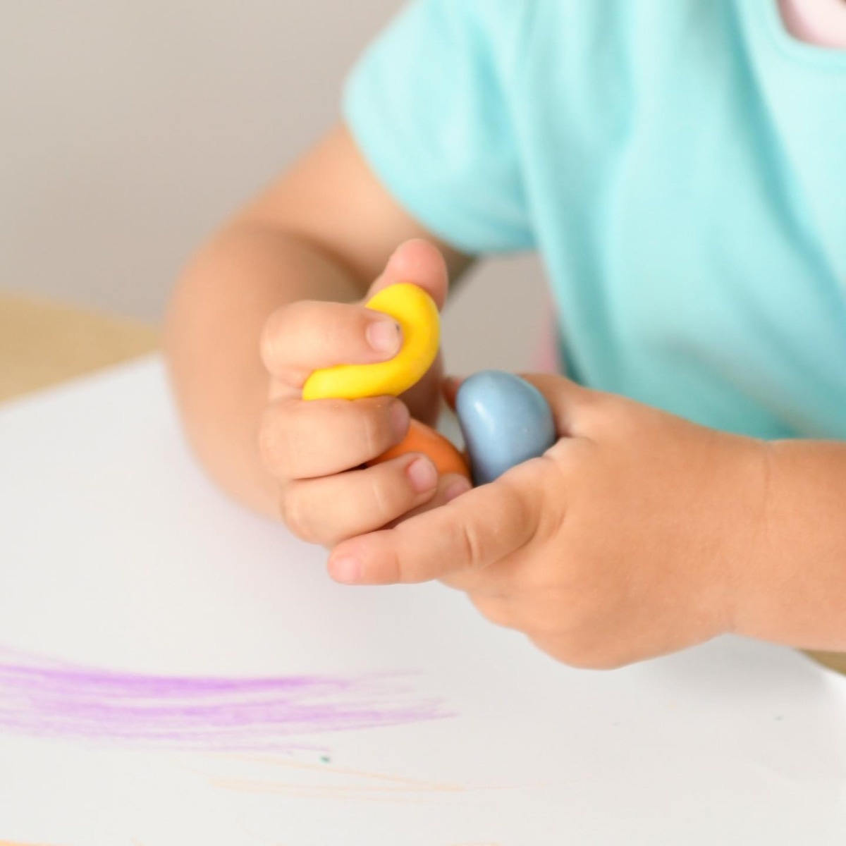 Des lors qu'ils commencent a gribouiller les enfants développent leur capacite a prendre et tenir un crayon dans les mains. Les Crayon Rocks avec leur forme arrondie permettent aux enfants des leur plus jeune âge de développer leur motricité fine plus efficacement et plus facilement que les crayons traditionnels et sans fatigue musculaire. Le sachet en mousseline de coton comprend huit couleurs : de quoi passer des heures a colorier et devenir un véritable artiste . De plus ce petit sachet est facile a glisser dans un cartable ou un sac pour des heures de dessin a la maison ou ailleurs. Matière : Fabriques avec des éléments naturels alliant de la cire de soja (ressource renouvelable) cultivée dans le Kentucky (USA) des pigments naturels et une roche naturelle du sol pour la solidité des crayons. A partir de 3 ans.
