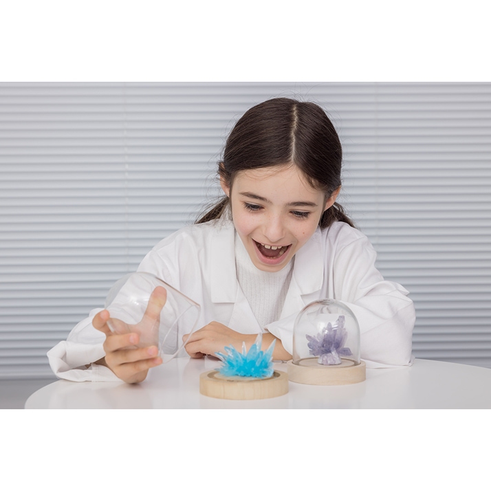 Des mini coffrets pour s’amuser à faire pousser ses propres cristaux ! Une expérience magique pour voir des minéraux bleus se former en quelques jours !