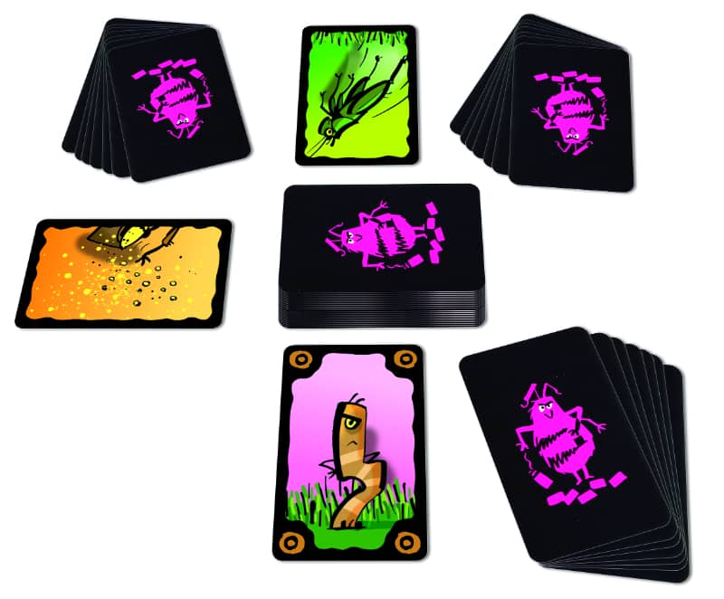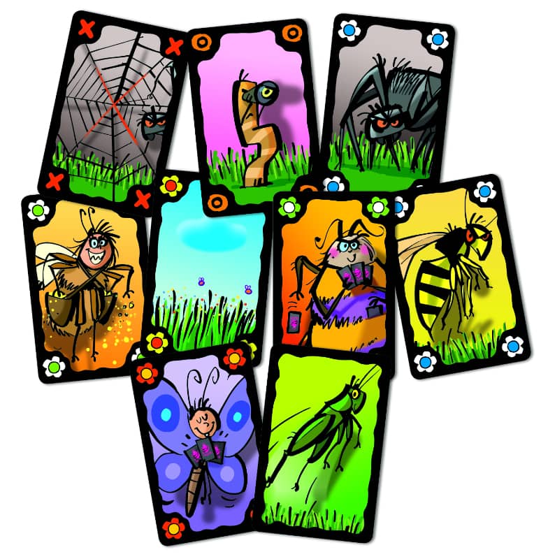 La revanche du Mito ! Dans Dard-Dard, il va falloir faire preuve de discrétion pour tricher et même voler vos adversaires ! Débarrassez-vous au plus vite de vos cartes en les jouant au centre de la table ou en les jetant par dessus votre épaule ou sous la table. Tant que le ver vigilant ne vous repère pas, tout est permis. Volez les sauterelles des autres pour leur offrir des cartes supplémentaires; une abeille débarque ? Attention, tous au abris, si le joueur qui l’a piochée vous touche avec la carte vous allez devoir piocher... et attention ne pas mettre la main sur le dard d’une guêpe !