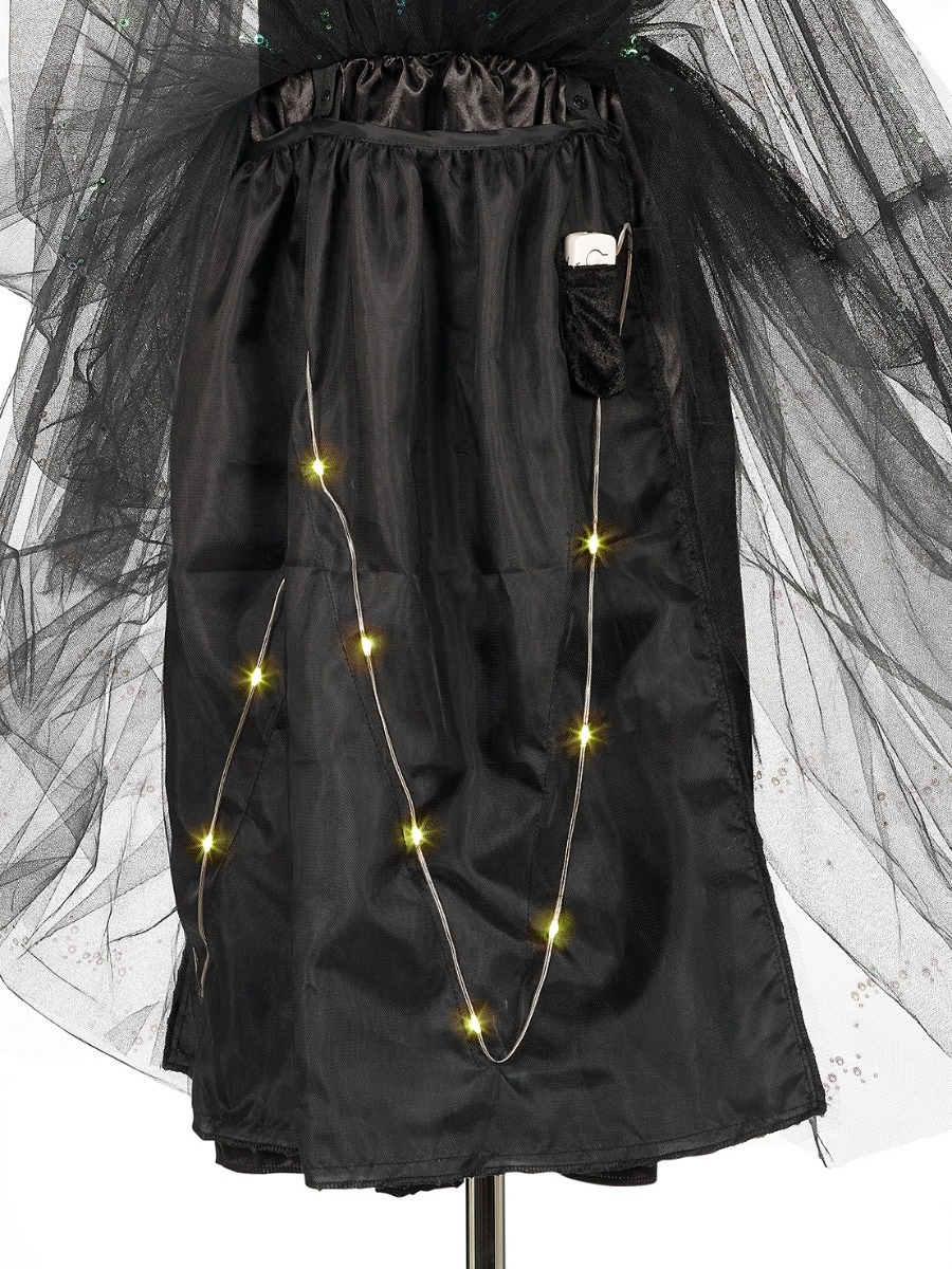 Adapté aux enfants de 5 à 7 ans, ce déguisement raffiné allie voiles légers, détails scintillants et teintes envoûtantes pour un look à la fois mystérieux et adorable.