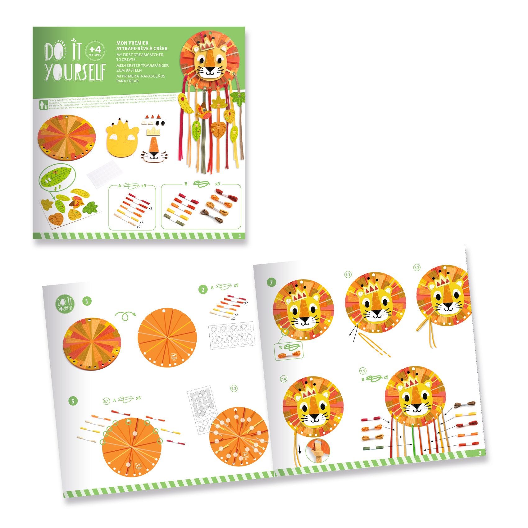 Un kit créatif spécialement adapté aux jeunes enfants, dès 4 ans, pour réaliser un joli attrape-rêve. L'enfant décore le lion de rubans et de fils colorés puis il colle les stickers épais pour habiller le support. Un bel objet de décoration à suspendre dans sa chambre pour éloigner les mauvais rêves…