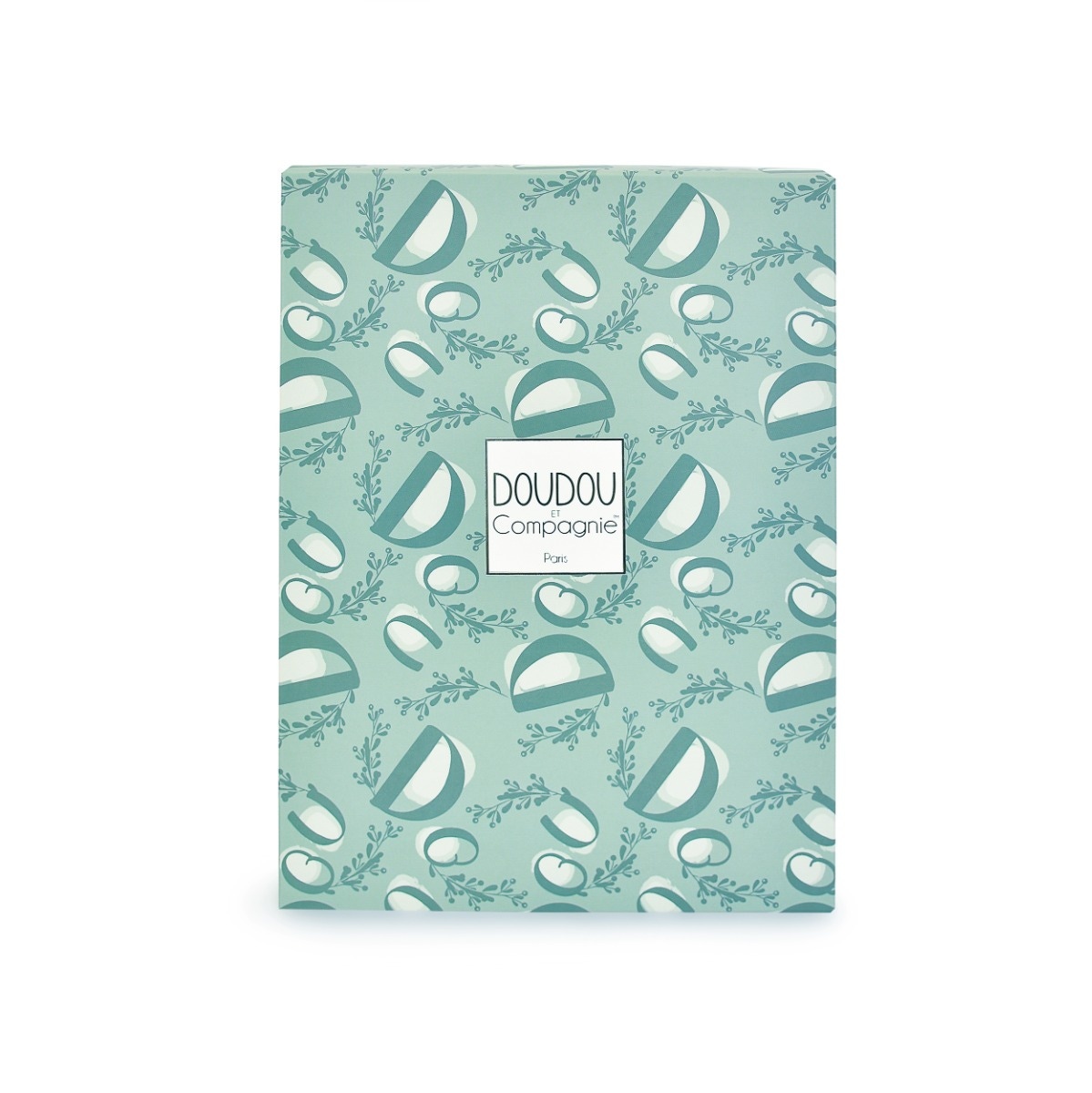 Au clair de la lune, MON AMI DOUDOU…un lapin habillé d'un foulard en lin, reflettant le chic à la française ! De couleur vert sauge, d'une forme originale grâce à son tissu froncé, il a des bras généreux pour se faire câliner. Son gonflant, son poil soyeux invitent à le serrer contre soi ou profiter simplement de sa présence, de jour comme de nuit. On retrouve également la matière lin sur ses pattes légèrement rembourées, très agréable toucher ! Son imprimé exclusif très frais est porteur d'un mot magique : DOUDOU !