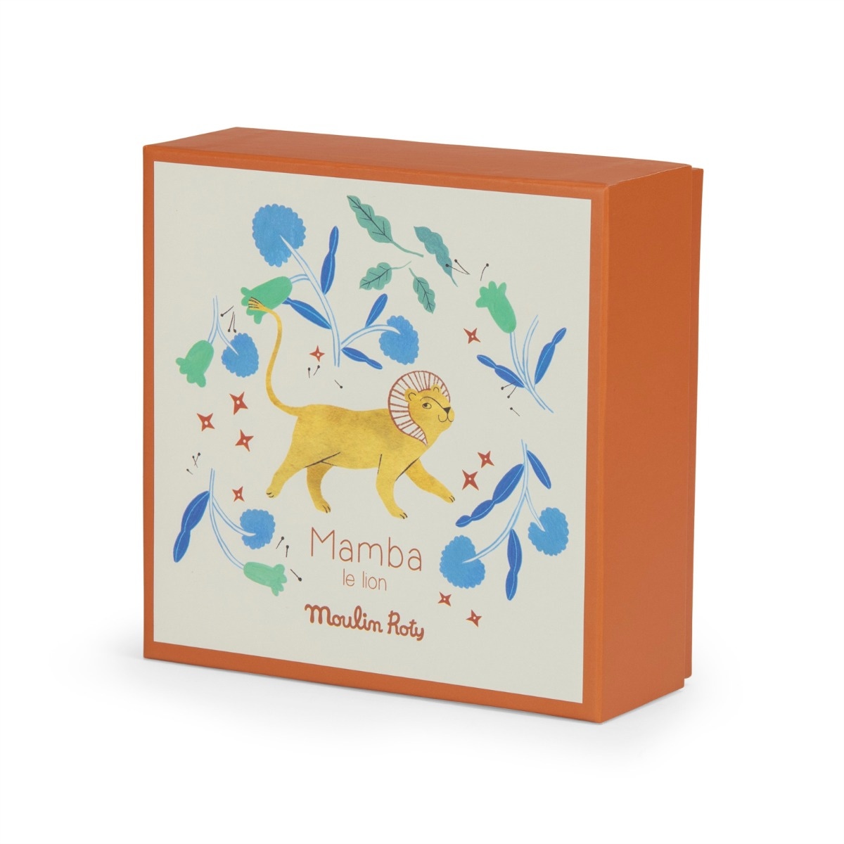 Doudou Mamba le lion Moulin Roty de la collection La Forêt Mawa, un compagnon doux et rassurant pour bébé.
