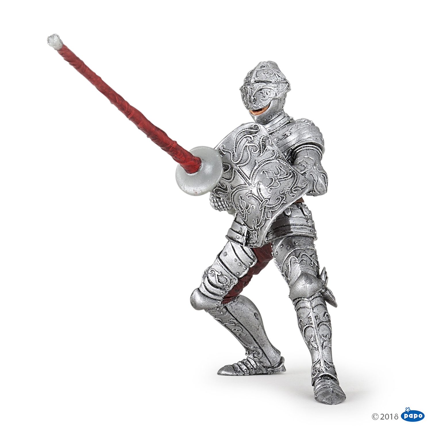 Les figurines Papo sont peintes à la main et conçues dans le but d'offrir aux enfants un formidable support de jeux et d'imagination. Au Moyen Âge, que ce soit pour les batailles ou les simples tournois le chevalier se devait d’être équipé et protégé des attaques ennemies. Pour cela il enfilait une armure qui pouvait peser jusqu’à 50 kg et le recouvrait presque intégralement.