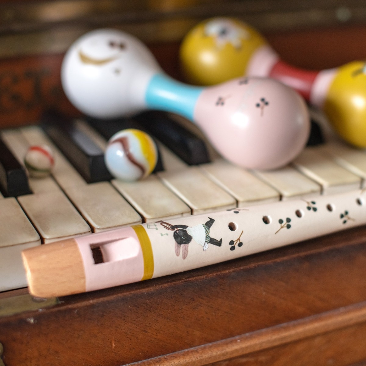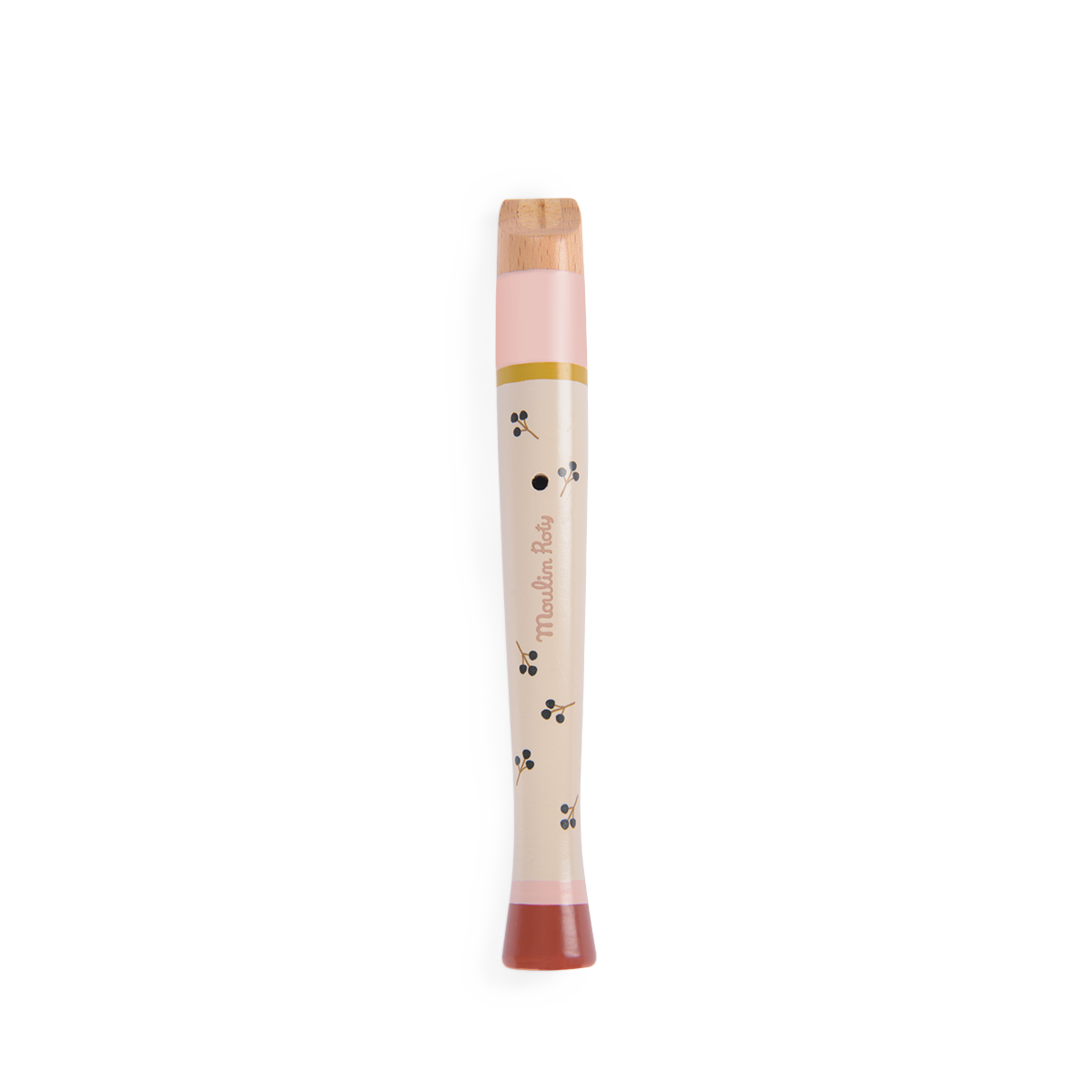 Flûte en bois à 6 trous décorée des illustrations poétiques de la collection Après la pluie. Instrument ludique pour initier les tout-petits à la musique, aux sons et au sens du rythme. Adapté pour les petites mains. 3 et +