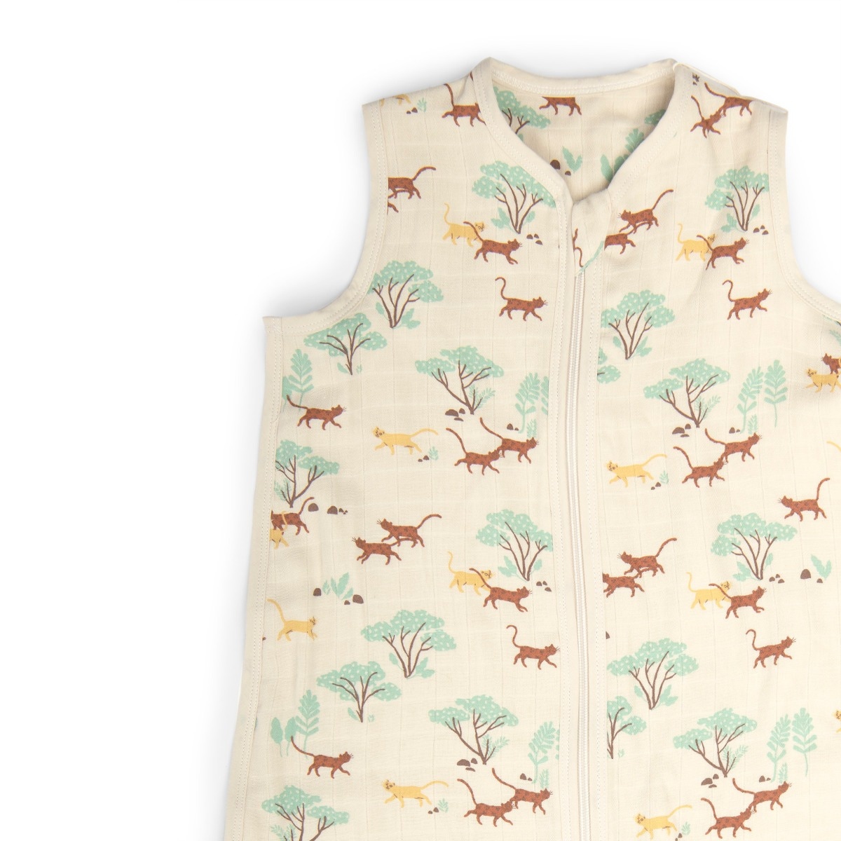 Idéale pour les nuits chaudes, la gigoteuse été Félins 90 cm La forêt Mawa de Moulin Roty enveloppe bébé de douceur et de légèreté.