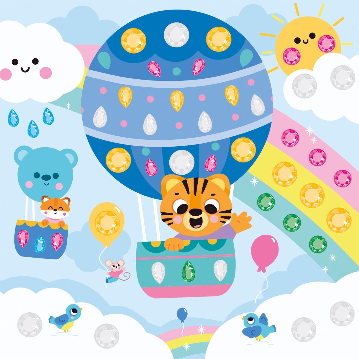 Des tableaux qui brillent de mille feux ! Ce coffret créatif permet de réaliser 4 tableaux à compléter avec des gros strass autocollants faciles à attraper. Ils sont de différentes tailles, couleurs et formes. Le coffret contient 4 tableaux et 180 gros strass autocollants (2 formes, 2 tailles, 5 couleurs). Les instructions et les modèles sont imprimés dans la boîte. Cetet activité permet de développer sa dextérité et sa patience et nécessite environ 10 minutes par tableau. Elle est idéale pour les enfants à partir de 3 ans.
