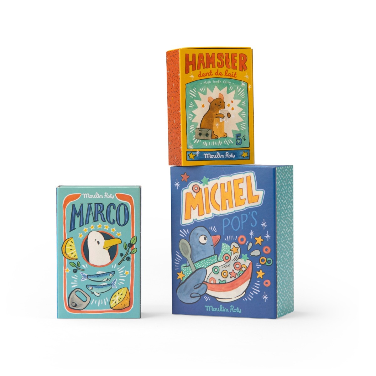 Découvrez le hamster dent de lait Puce & Pilou de Moulin Roty. Véritable gardien des petites quenottes, notre ami Cacaouète attend sagement pour les ranger précieusement dans sa poche. Elle se range dans une boite allumette reprenant les adorables illustrations de la collection Moulin Roty.