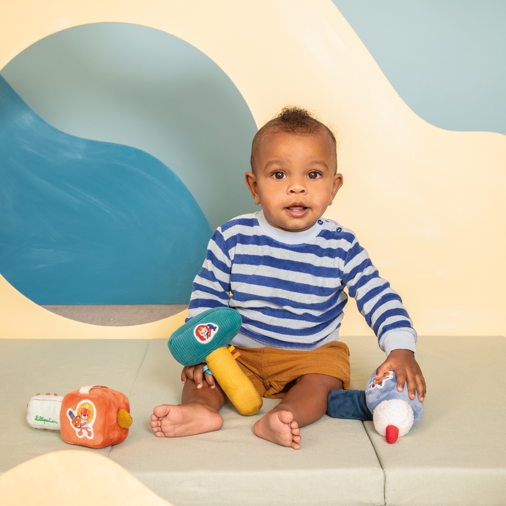 Ce hochet en forme de marteau de chez Lilliputiens divertira les tout-petits dès 3 mois. En combinant un son et des matières variées, ce hochet stimule à la fois le sens du toucher et de l’ouïe, offrant à bébé une expérience sensorielle complète et captivante.