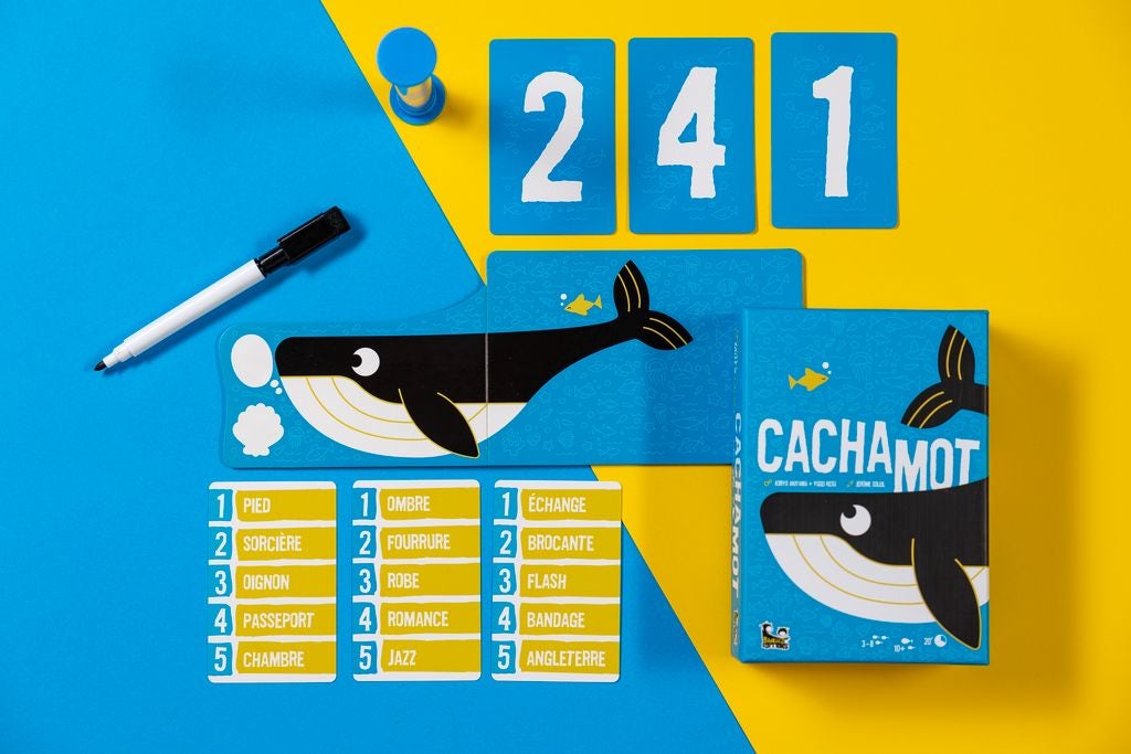 Dans Cachamot, un jeu de mots malin et amusant, les joueurs doivent retrouver les mots imaginés par le "Cachamot", celui qui choisit les mots et donne les indices. Mais attention, le Cachamot n'est pas là pour faciliter la tâche ! Son rôle est de guider les autres joueurs tout en subtilité, en veillant à ce que les réponses ne soient ni trop faciles ni trop difficiles à deviner. Le jeu Cachamot mêle stratégie, réflexion et un brin de malice, en demandant aux joueurs de deviner les mots tout en manipulant les indices pour éviter de rendre les solutions trop évidentes. Un jeu idéal pour tester sa créativité, sa mémoire et son esprit d’équipe tout en s’amusant.