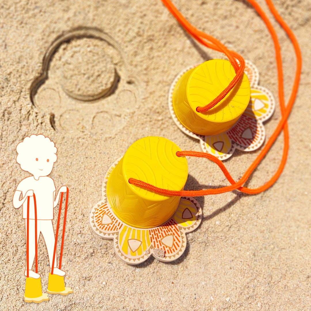 Pattoons est un jeu d'équilibre. L'enfant monte sur les 2 pattes et avance en essayant de garder l'équilibre : s'il met un pied à terre, c'est perdu !