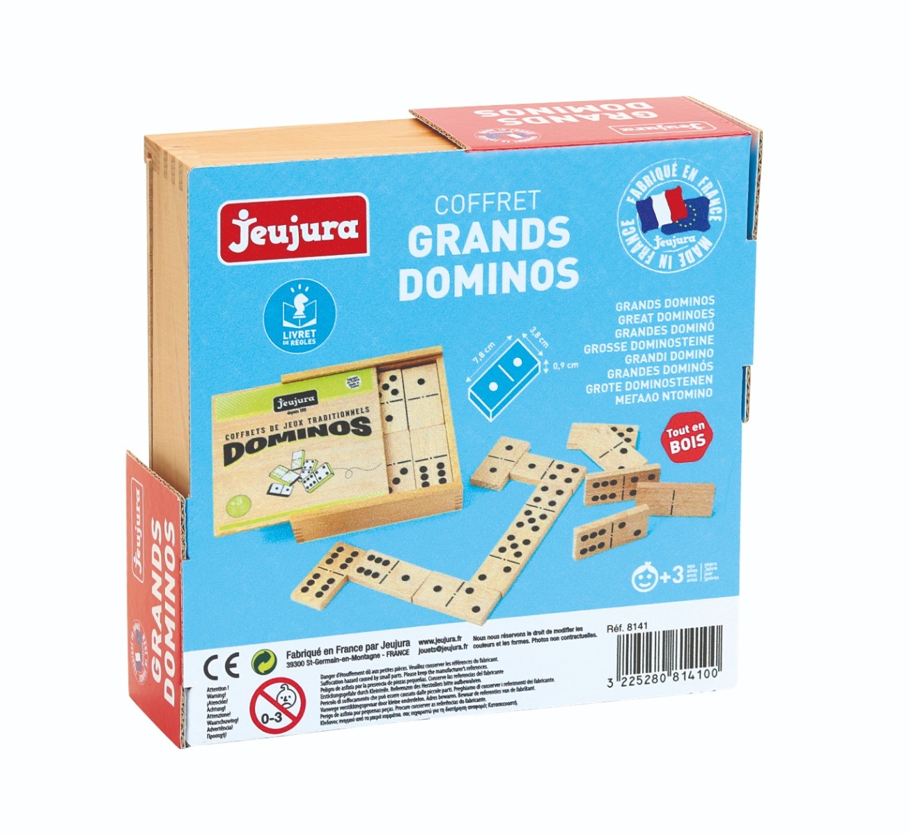 | Dimension du produit | Format d’un domino : 7.8 x 3.8 x 0.9 cm - Coffret : 17.5 x 17.5 x 5.5 cm |