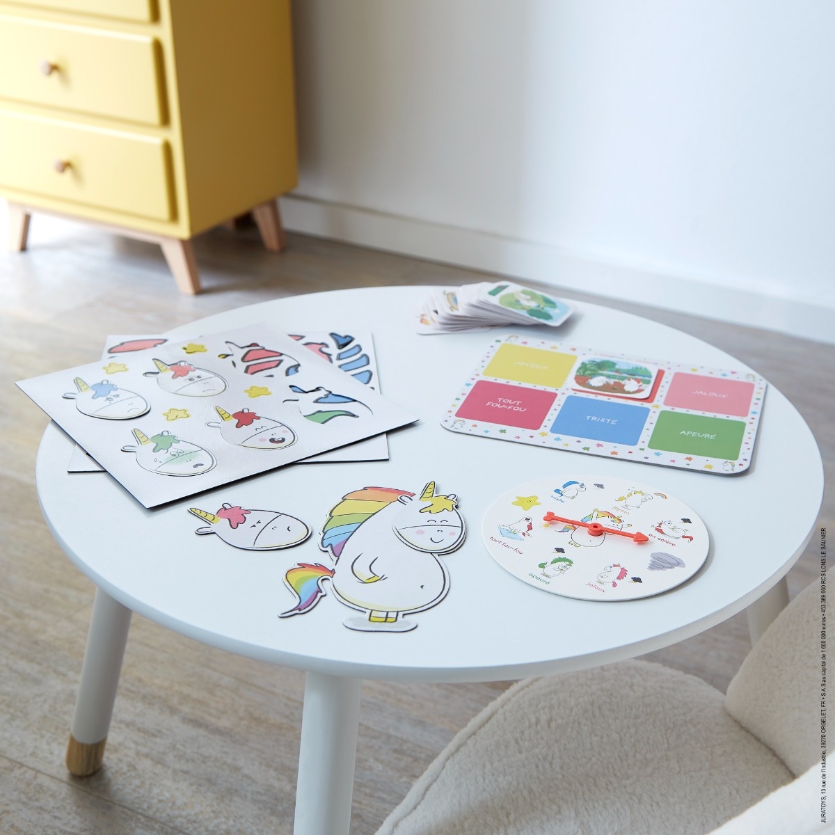 Aide Gaston la licorne à apprivoiser ses émotions grâce à ce jeu coopératif ludique et éducatif. Les enfants collectent 6 émotions différentes en lançant la roue et en choisissant les bonnes cartes « scènes ». Mais attention : si la crinière aimantée de Gaston se complète trop vite, il sera submergé ! Heureusement, un livret propose des exercices de respiration simples pour retrouver le calme.