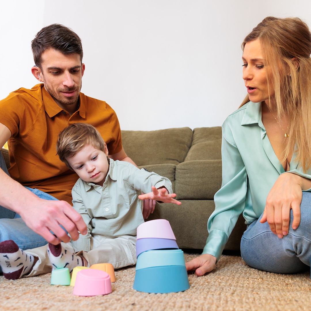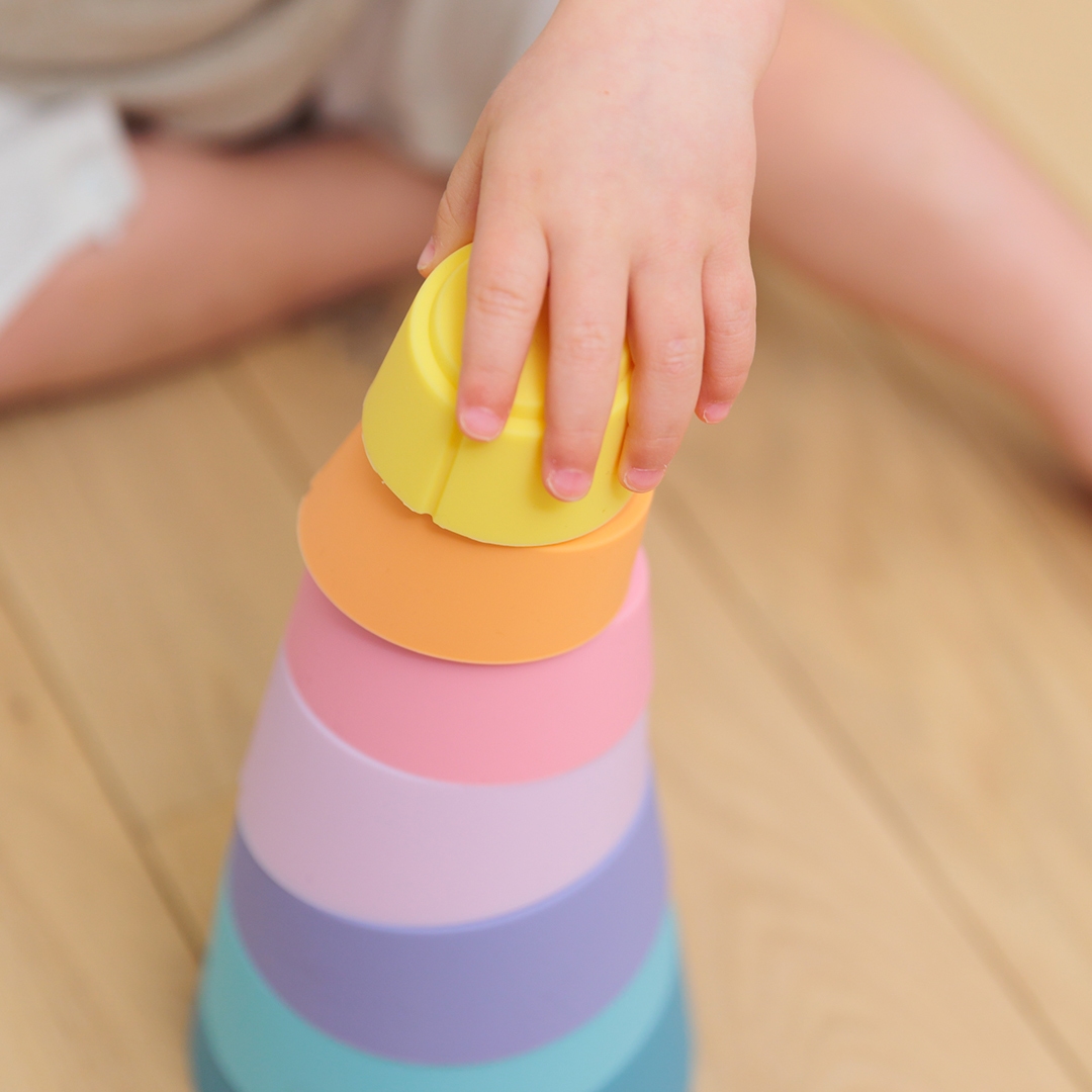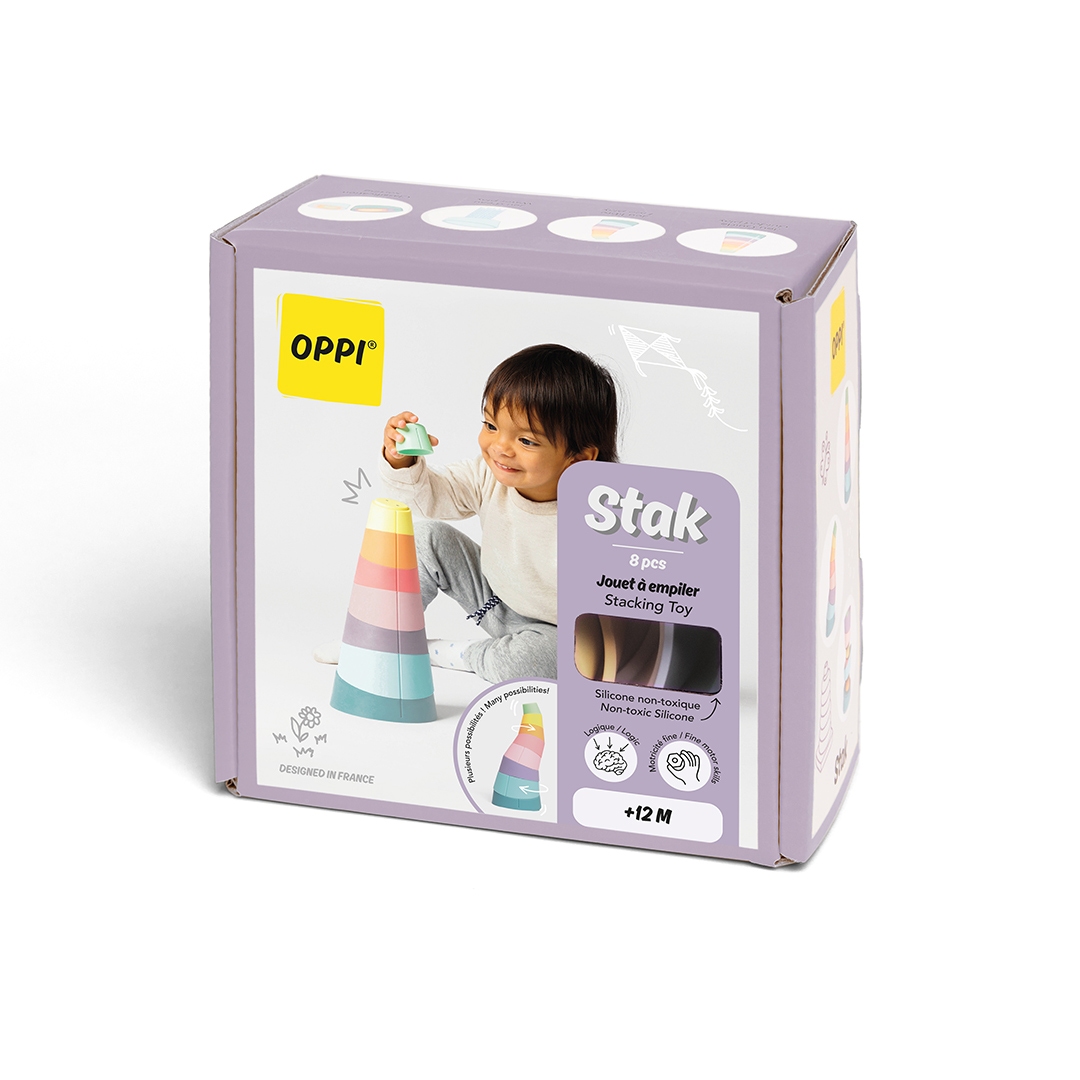 Stak est un jouet à empiler de chez Oppi qui développe la motricité fine et la logique pour les enfants à partir de 12 mois.