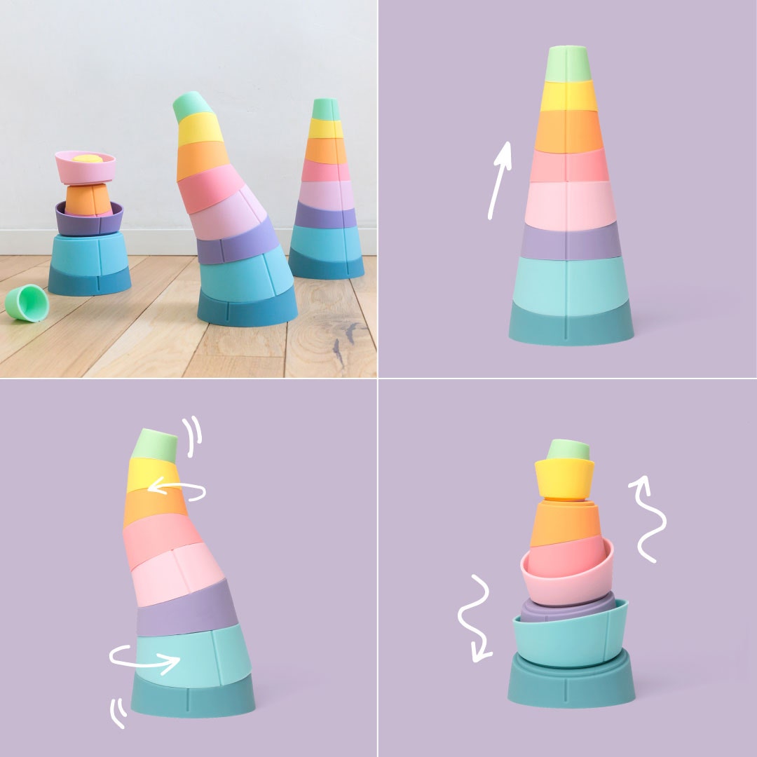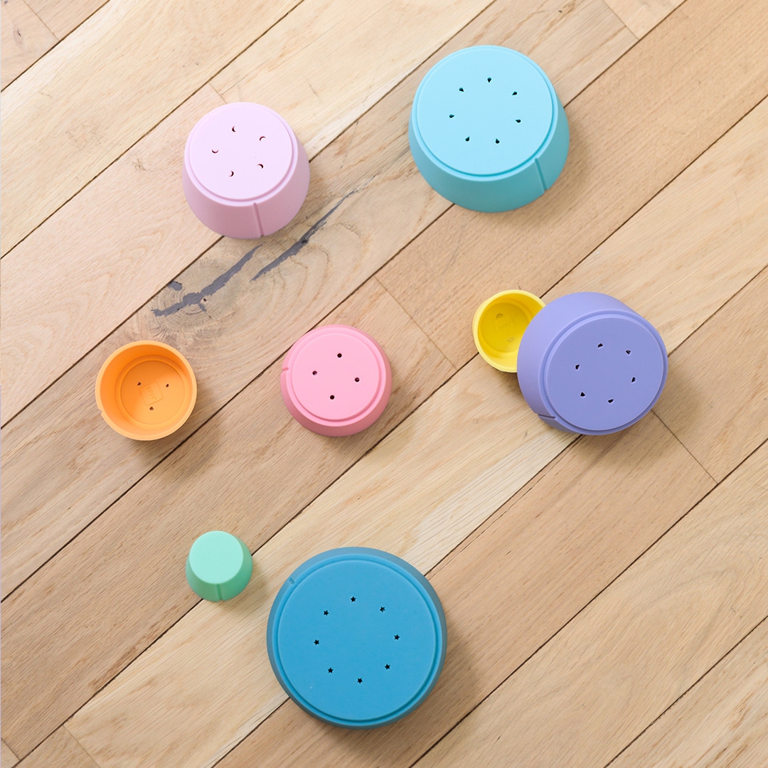 Stak est également un bon outil pour apprendre à compter et à trier les pièces par taille, forme ou couleur. Enfin, c’est excellent jeu d’eau pour s’amuser dans le bain ou à la plage en utilisant les différents petits trous de chaque pièce.