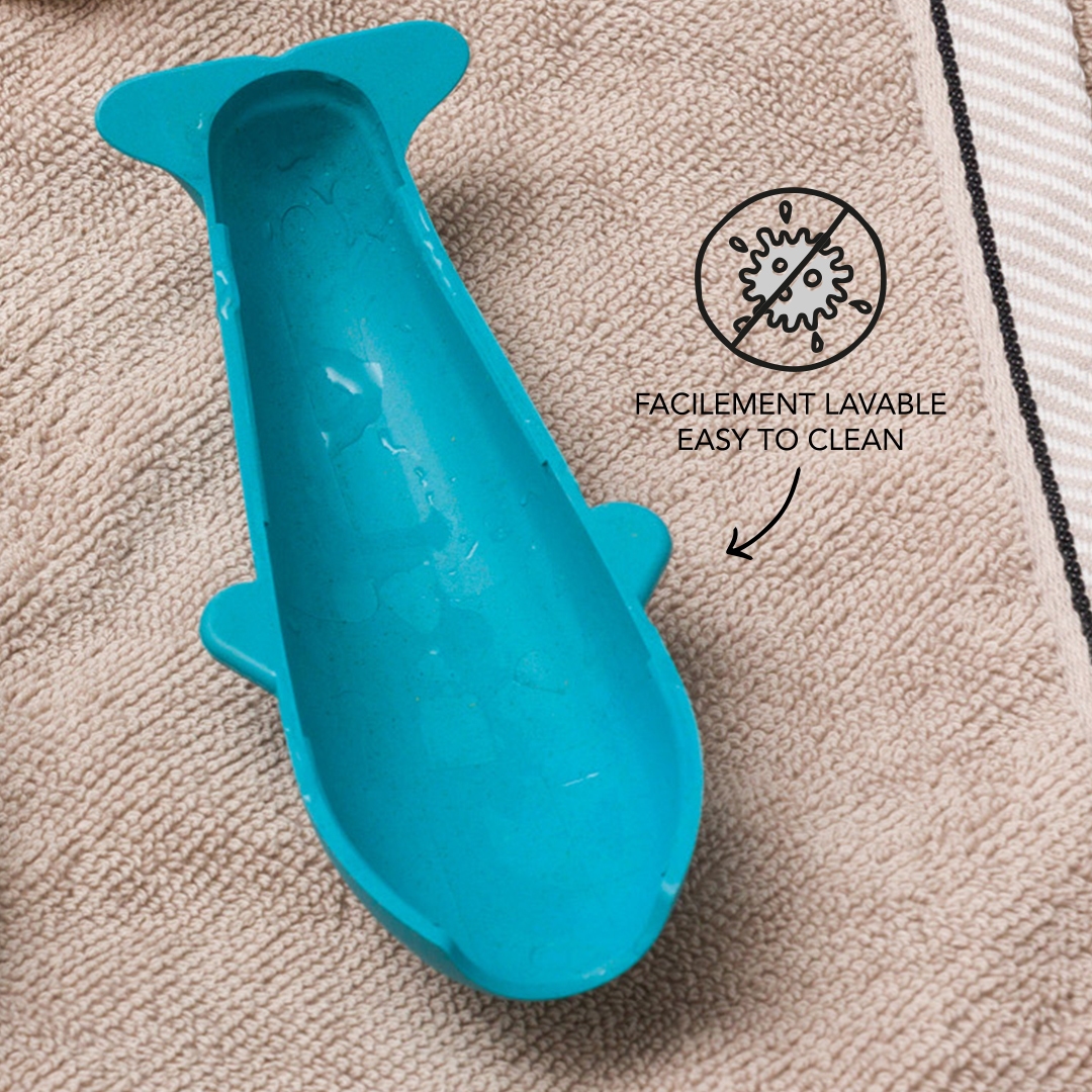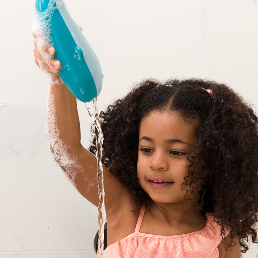 Mais ce n’est pas tout, grâce à son design, il sera également possible de rincer la tête des petits, transvaser de l’eau et jouer de manière libre ou créer de nombreuses histoires drôles et imaginaires.