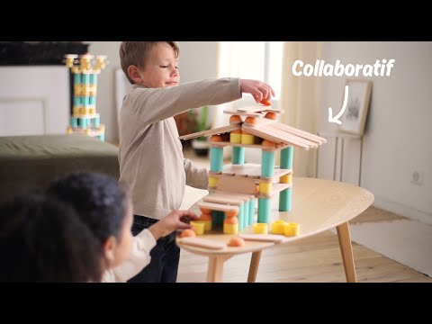 Stix est un jouet de construction libre et modulaire qui engage la créativité des enfants. Le but du jeu ? La liberté absolue : créer et reproduire toutes les idées possibles et inimaginables. La planification, la motricité fine et la créativité sont les clés pour créer des créatures, des personnages ou des bâtiments incroyables ! Et pour cela, Stix cache un secret magique : la rotule ! En combinant les demi-sphères et les tubes en silicone, les enfants obtiennent une rotule qui permet d'orienter et de stabiliser librement les constructions avec les planchettes en bois ! Les pièces en silicone adhérent avec les planchettes en bois et permettent des possibilités infinies.
