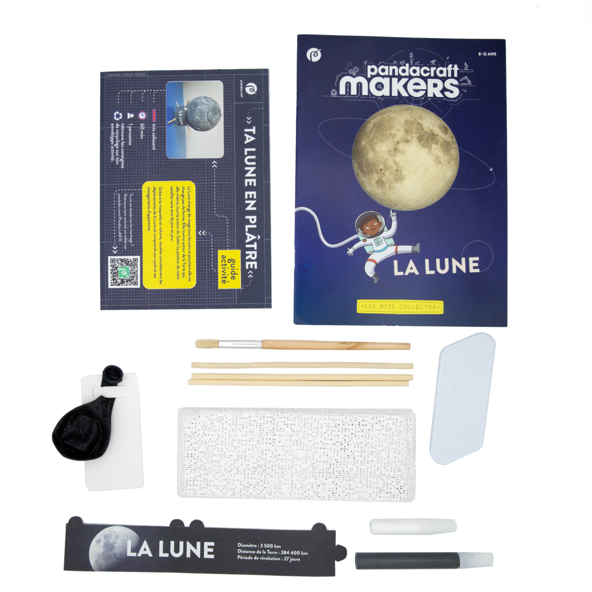 | Contenu du produit | 1 dossier éducatif de 16 pages pour découvrir les mystères de la Lune 1 enveloppe activité avec tout le matériel pour construire son laboratoire d'exploration 1 guide d'activité |