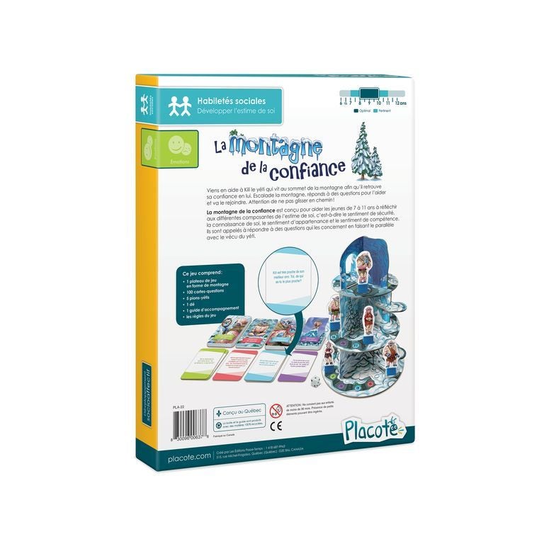 La Montagne de la Confiance de Blackrock Games est un jeu de parcours passionnant conçu pour aider les à développer leur estime de soi. Ce jeu est conseillé pour les enants de 7 à 11 ans. Les joueurs se lancent dans une aventure au cœur de la montagne pour rejoindre Kili le Yéti. Ils devront répondre à des cartes-questions spécialement conçues pour explorer les différentes composantes de l'estime de soi. L’avis de la Blackrock Family : La Montagne de la Confiance est un jeu éducatif conçu spécialement pour les jeunes âgés de 7 à 11 ans. Il vise à développer leur estime de soi en les amenant à réfléchir sur différentes composantes de celle-ci, tout en établissant un parallèle avec le vécu du yéti, personnage central du jeu.