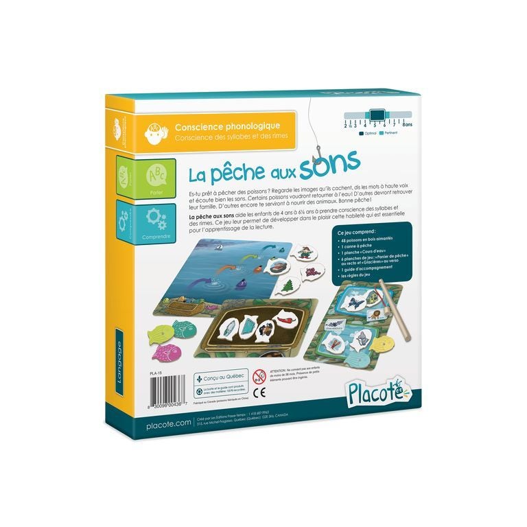 La pêche aux sons aide les enfants de 4 ans à 6½ ans à prendre conscience des syllabes et des rimes. Ce jeu leur permet de développer dans le plaisir cette habileté qui est essentielle pour l’apprentissage de la lecture.