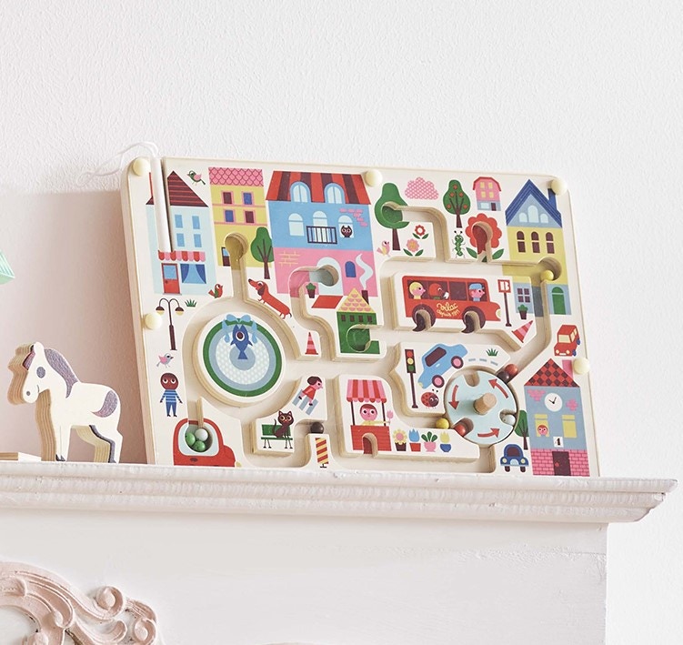 Bienvenue dans l'univers poétique et vintage d'Ingela P. Arrhenius. Grâce à un petit stylet magnétique, les enfants font voyager les billes de couleur dans cette magnifique ville.